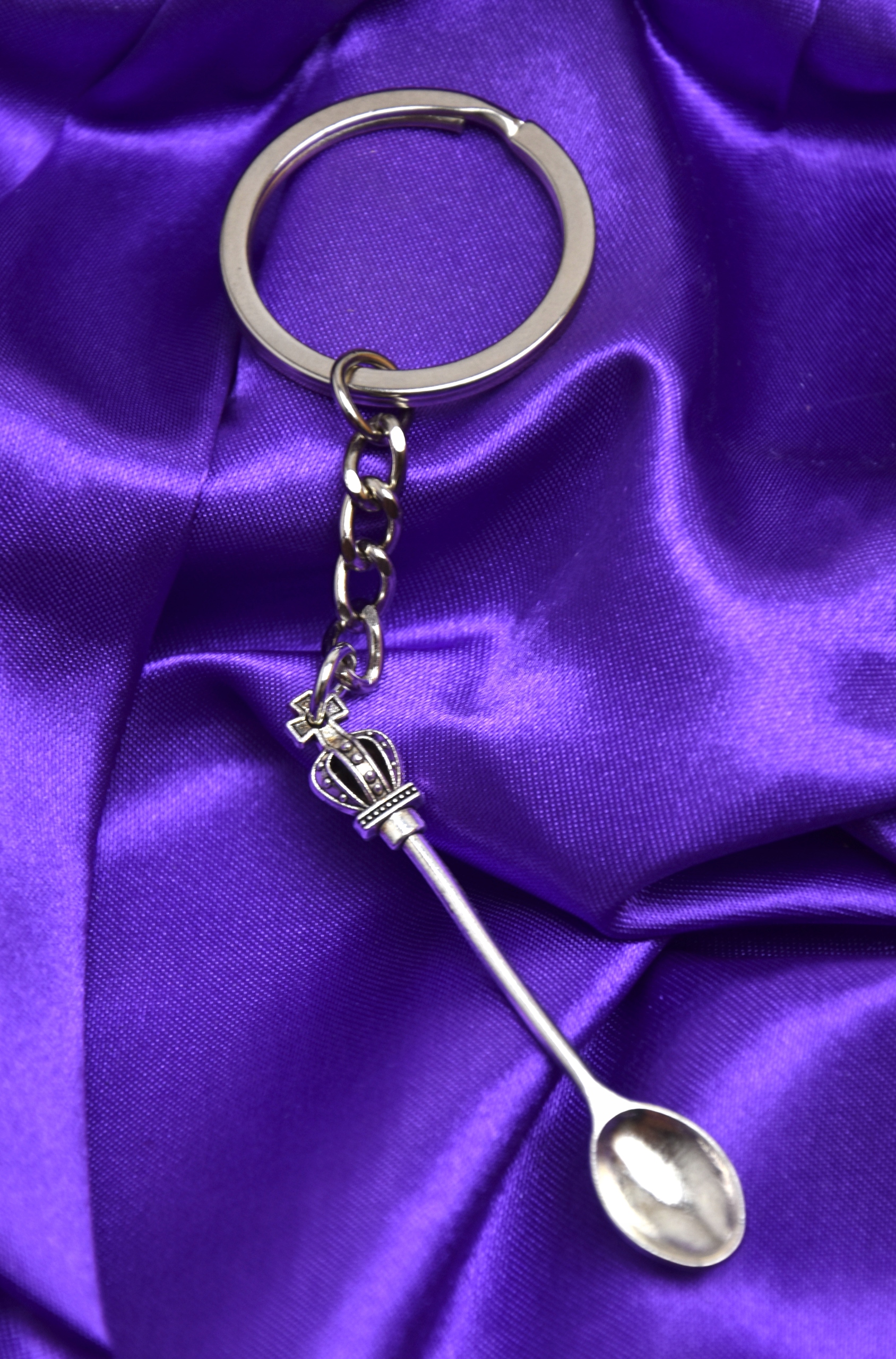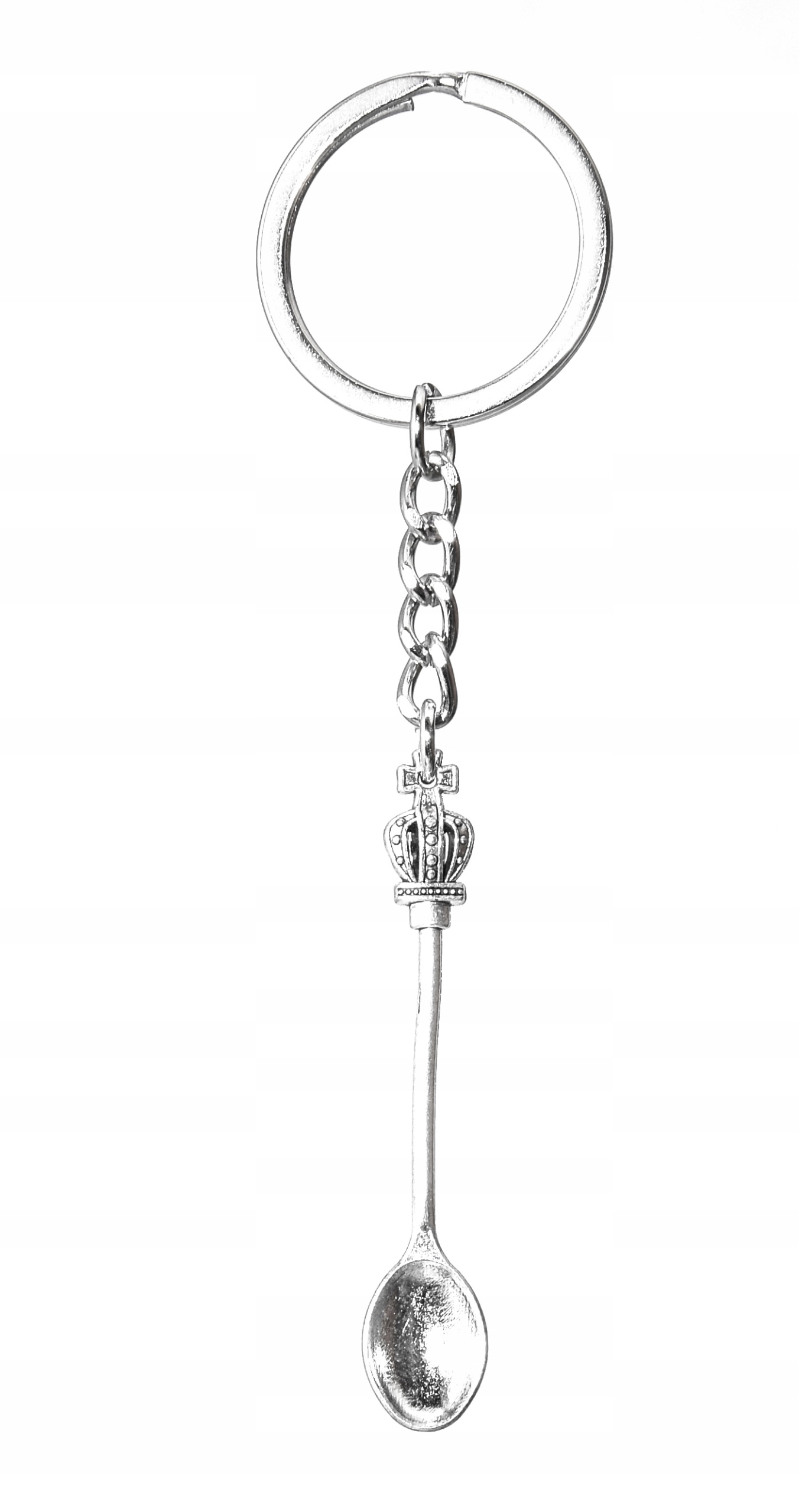 - Mini łyżka z zawieszką w kształcie korony, stylowa i niepowtarzalna. Ten brelok jest łatwy w dopasowaniu do kluczy, co sprawia, że jest on bardziej uroczy. Wykonany z materiału stopowego o doskonałej jakości.