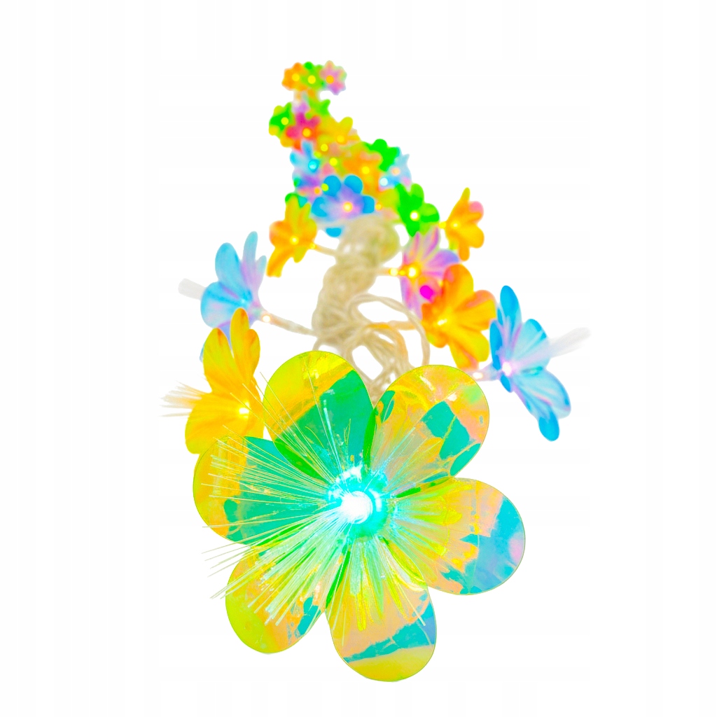 - Rozświetl swój dom wyjątkową dekoracją, która zachwyci każdego! Ten zestaw lampek LED został zakończony kolorowymi, metalicznymi kwiatkami, które dodatkowo posiadają światłowodowe włókna dające delikatny, bajkowy efekt rozproszonego światła. Idealne na choinkę, ścianę, balustradę, pokój dziecięcy czy dekorację wnętrz przez cały rok!