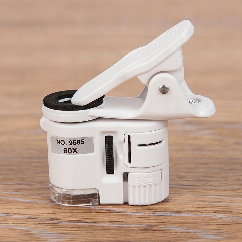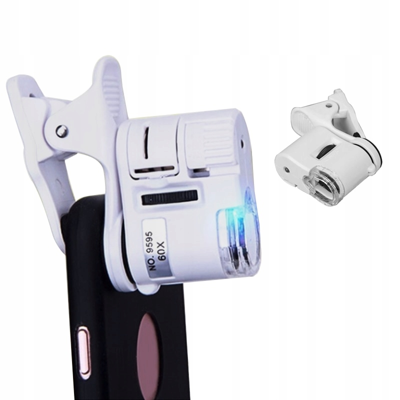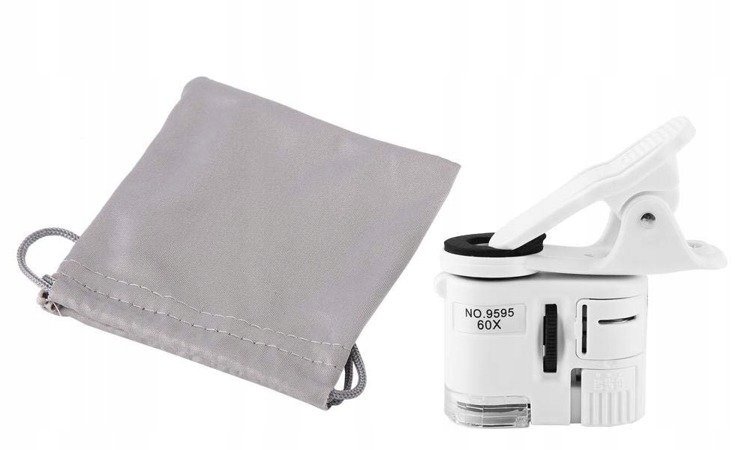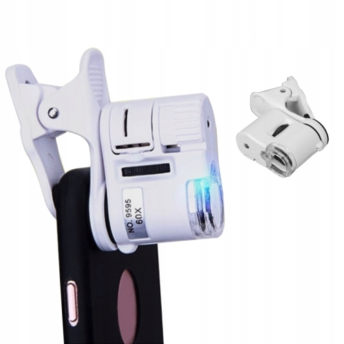 MIKROSKOP LUPA KLIPS TELEFON OBJEKTYW 60X UV LED