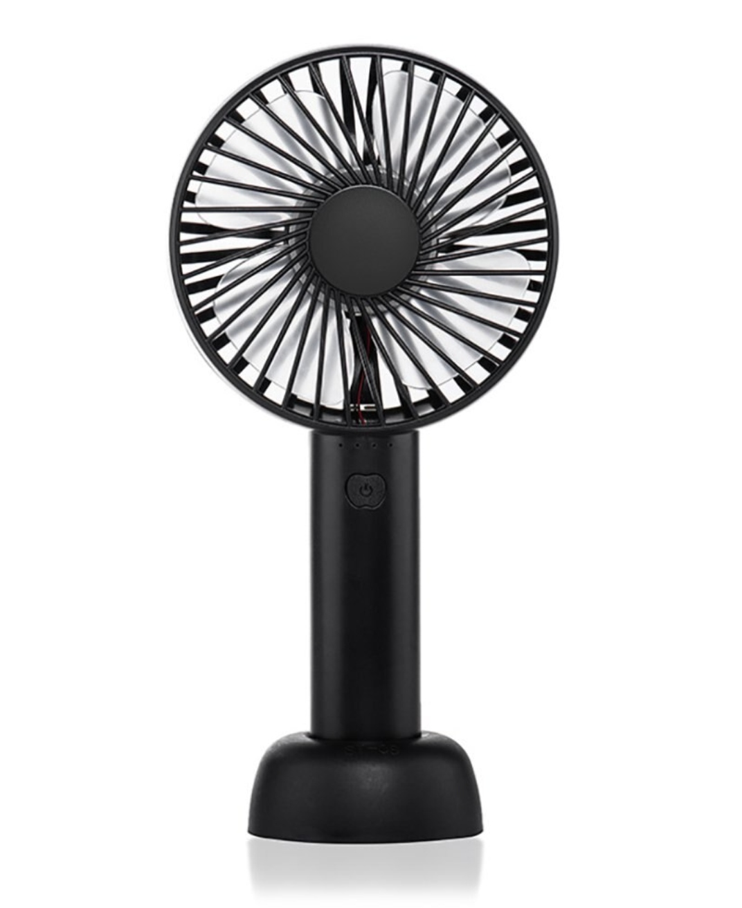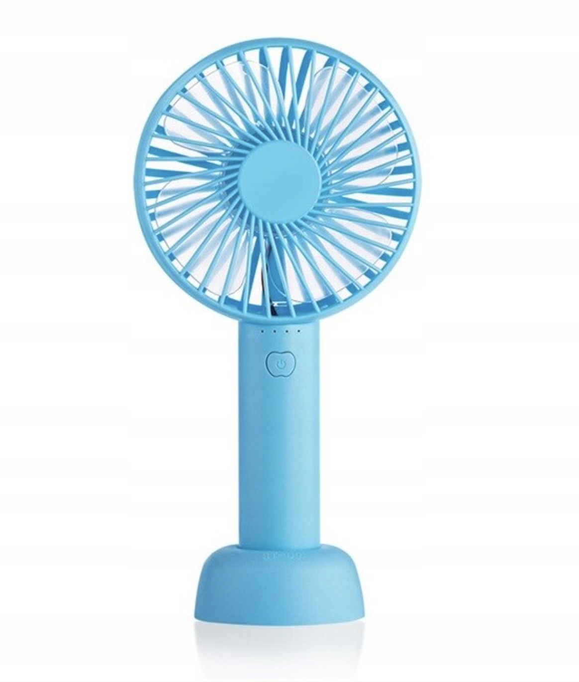 Wiatrak ręczny z akumulatorem i podstawką na biurko.