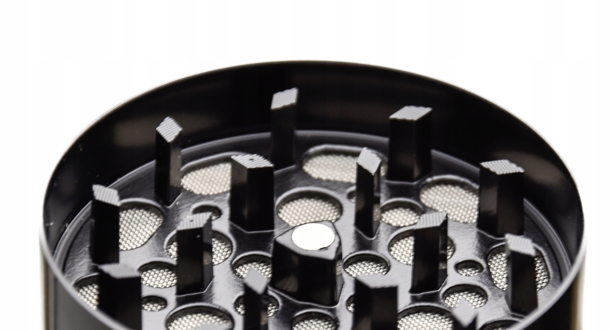 - Młynek posiada 3 komory: pierwsza na porcję suszu do zmielenia, druga na już zmielone zioła oraz najniższy poziom przeznaczony do kolekcji pyłku.