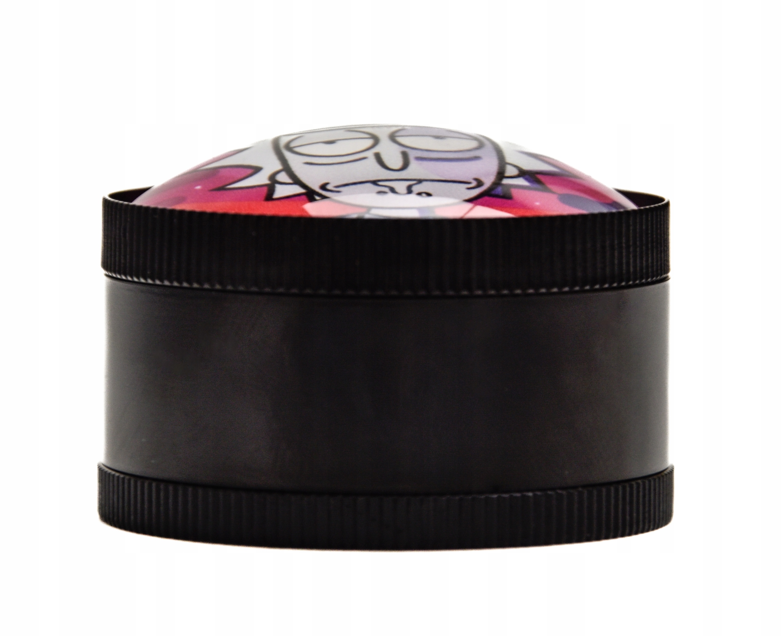 - Piękny młynek o średnicy 50mm zaprojektowany w stylu R&M posiada piękną wypukłą pokrywę wykonaną ze szkła.