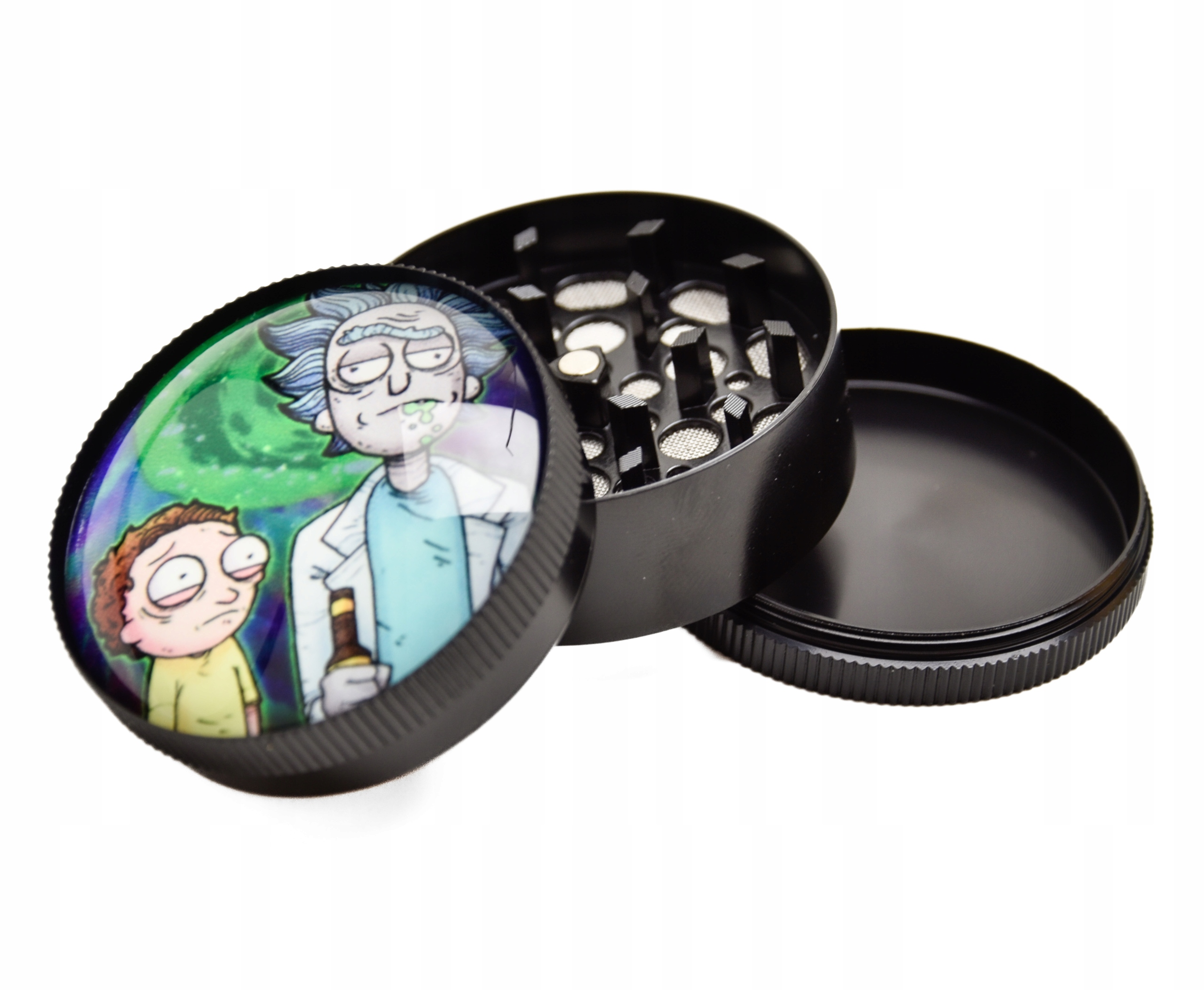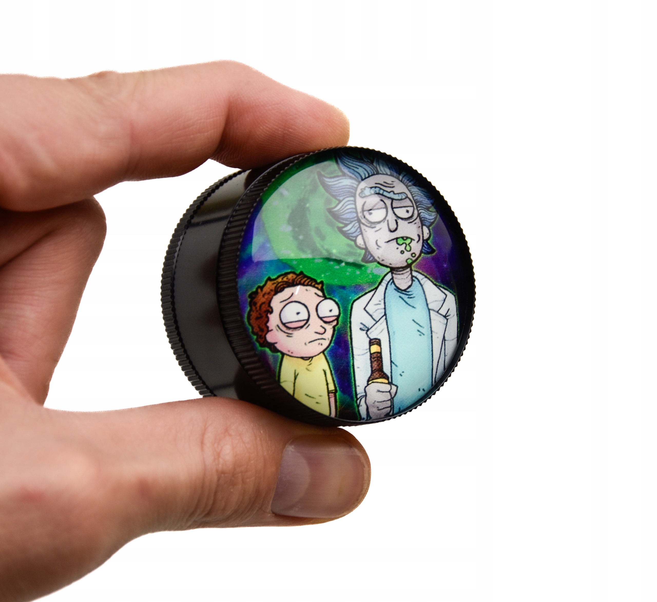 - Młynek o Rick & Morty Drunk wykonany jest z najwyższej jakości aluminium. To 3-częściowy ergonomiczny młynek, który został stworzony aby w końcu dostarczyć idelane połączenie designu i funkcjonalności. Wspaniała, szklana, magnetyczna i wypukła pokrywa sprawi że będzie się wyróżniał.