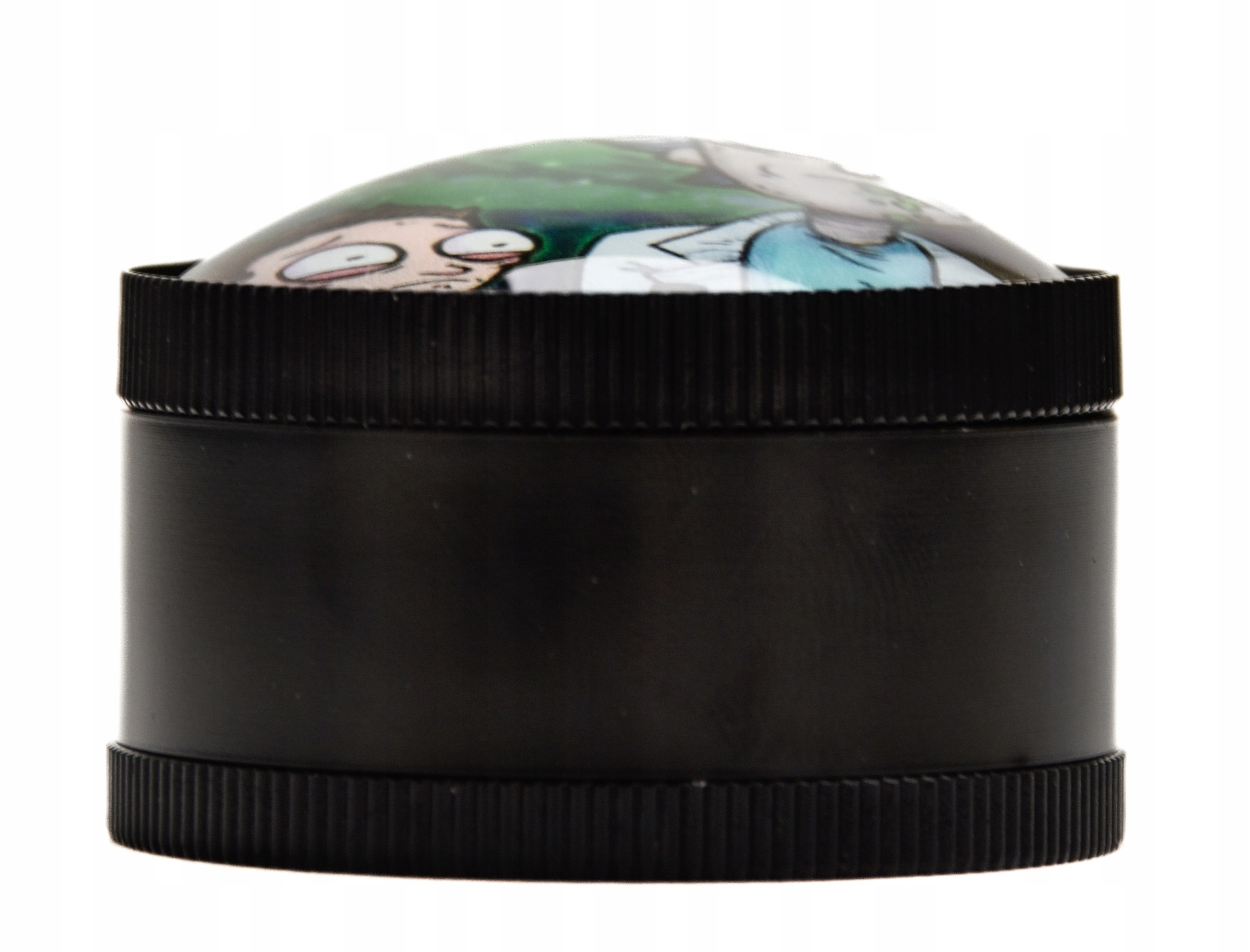 - Piękny młynek o średnicy 50mm zaprojektowany w stylu R&M posiada piękną wypukłą pokrywę wykonaną ze szkła.