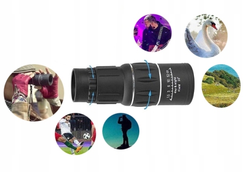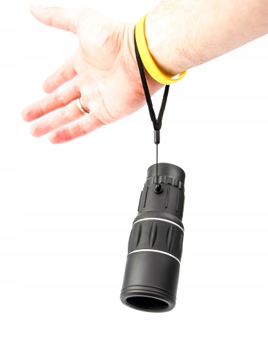 - Monokular posiada w zestawie wygodny i praktyczny pasek nadgarstkowy, mocowany do wejścia gdzie możemy zamontować statyw, przyda nam się w podróży gdzie będziemy musieli szybko zareagować by zobaczyć dany obiekt.