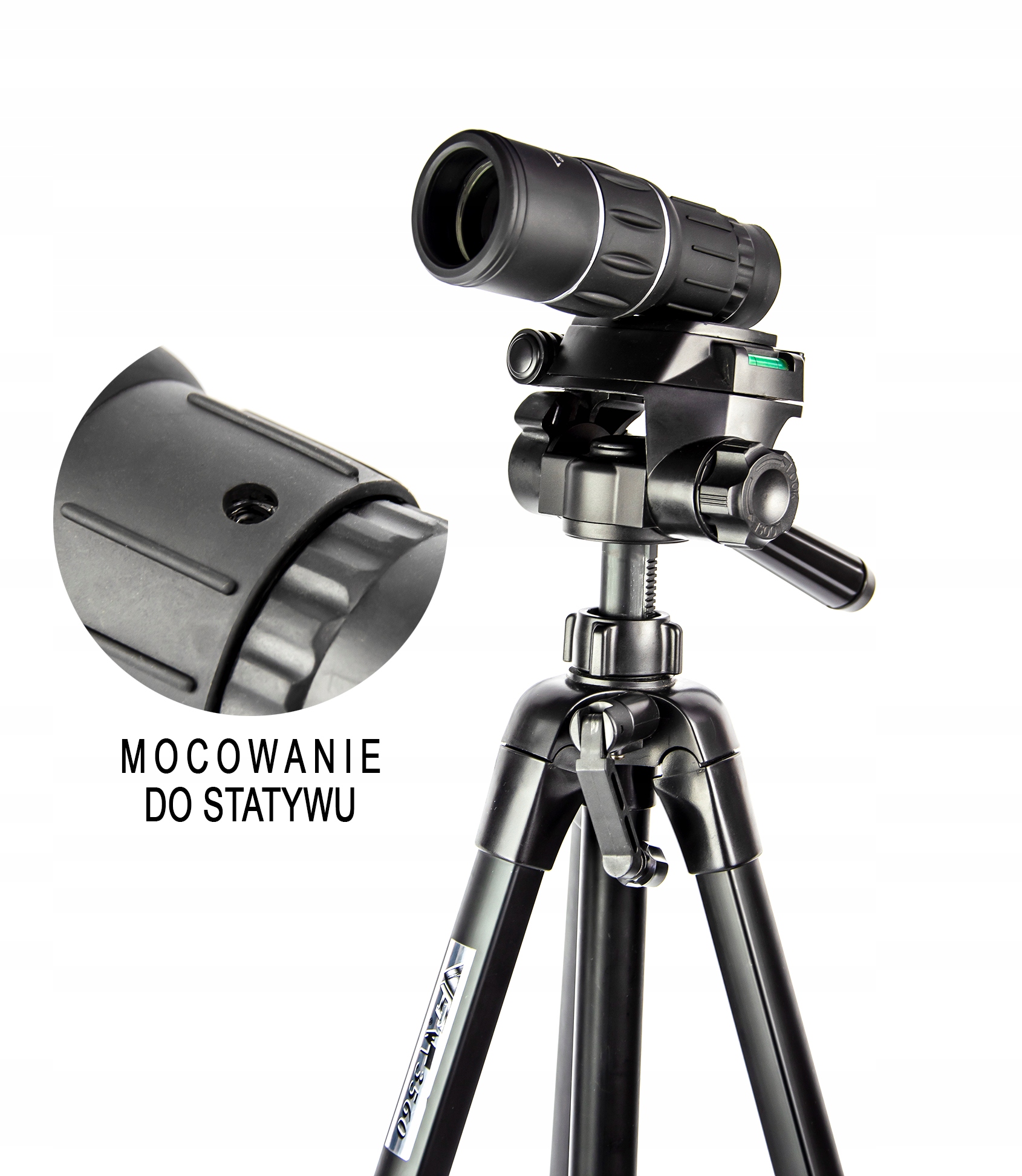 - Monokular posiada mocowanie do statywu (statyw nie jest w zestawie), które pozwoli nam na oglądanie obiektów położonych bardzo daleko a przy tym nie będzie drgań oglądanego obrazu.