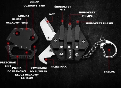 MULTITOOL BRELOK 14 W 1 OSTRZE ŚRUBOKRĘT PRZECINAK