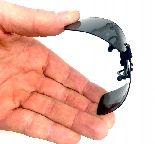 Zastosowany w nakładkach materiał sprawia, że są one niezwykle odporne na wyginanie, można je również dociąć (ostrymi nożyczkami) do kształtu okularów .