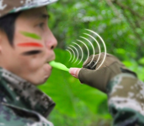- W rękojeści w której jest schowane ostrze został wbudowany gwizdek ostrzegawczy, może się przydać w awaryjnych sytuacjach.