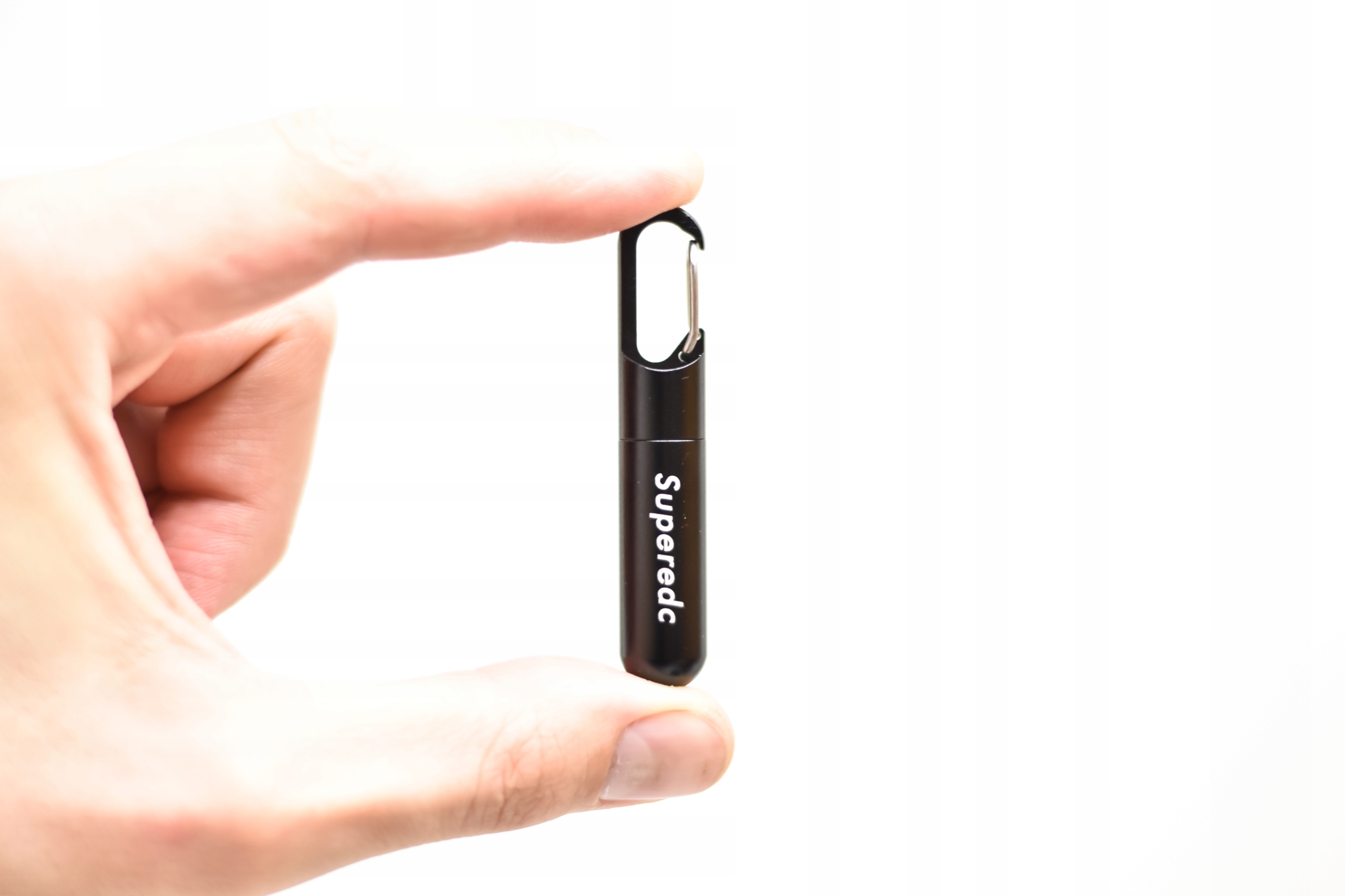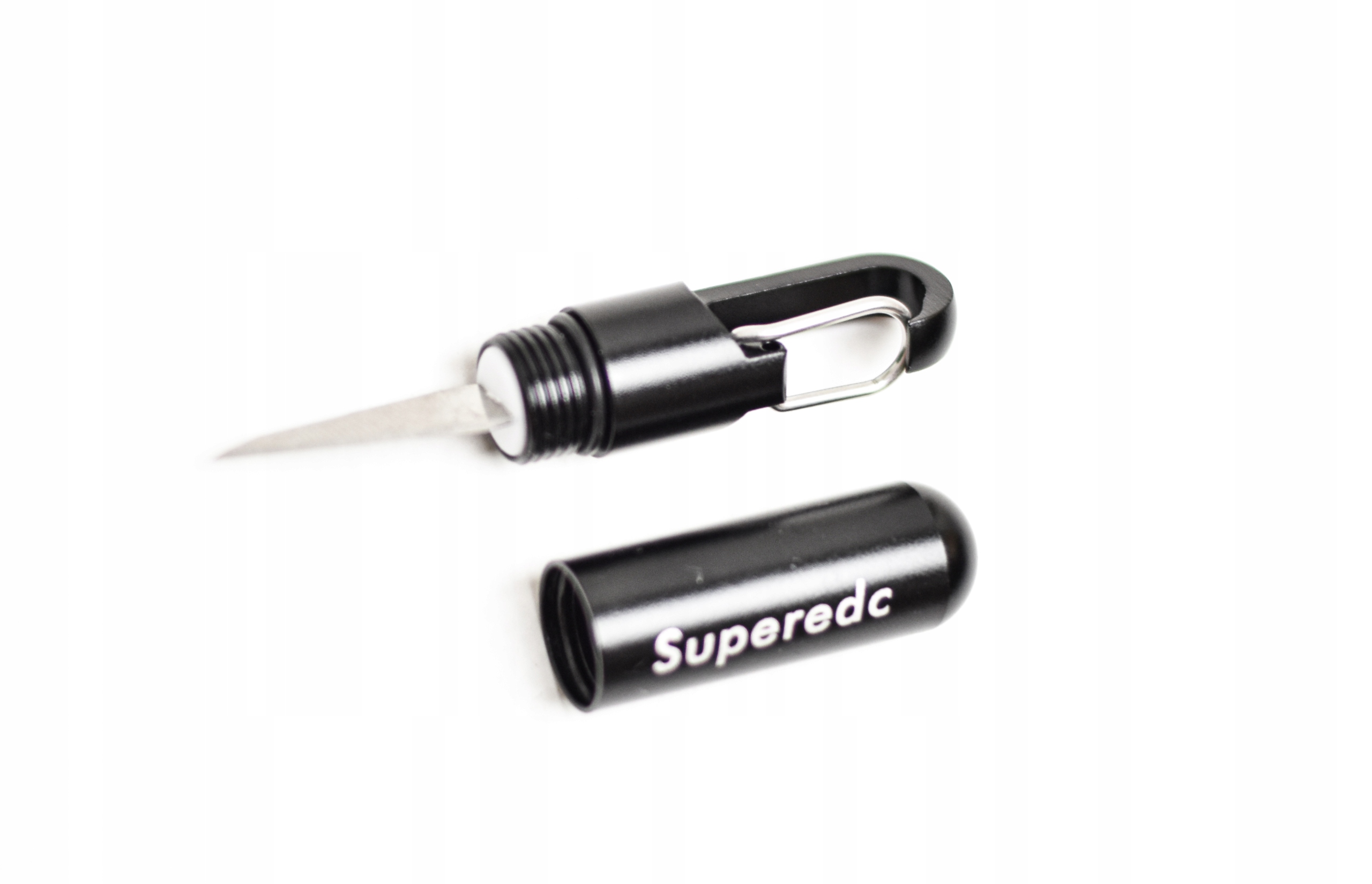 - Najmniejszy, cały ze stali nierdzewnej nóż w formie skręcanej kapsułki, zakończony karabińczykiem. Zamknięcie zabezpieczone uszczelkami ( dwie dodatkowe uszczelki gratis w zestawie)