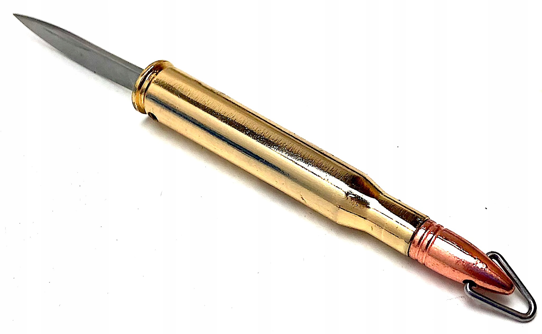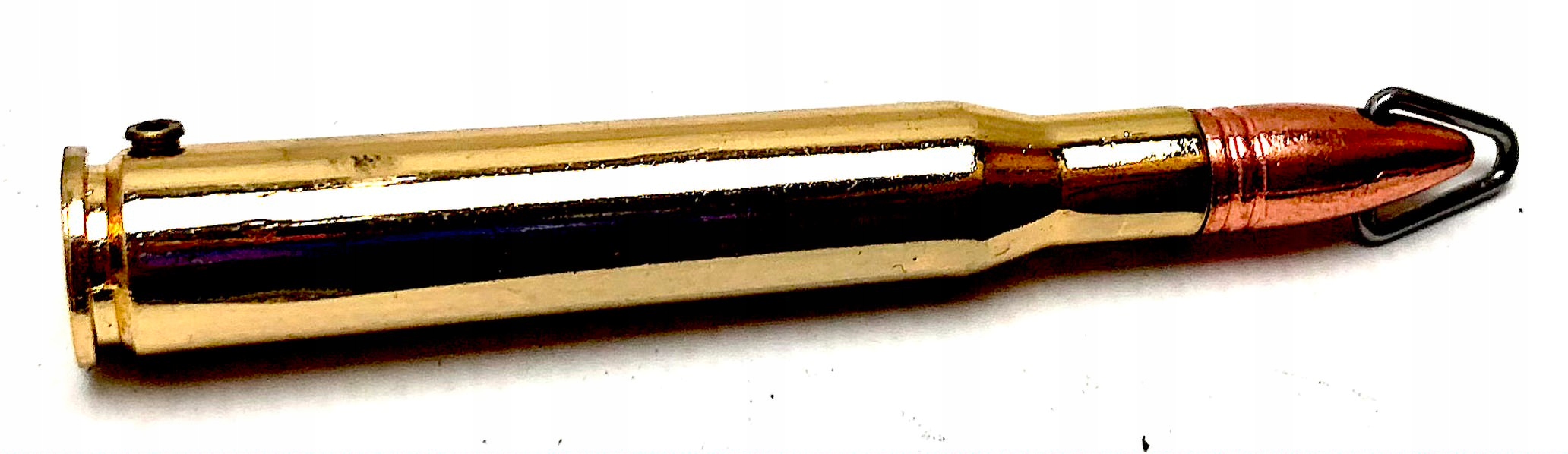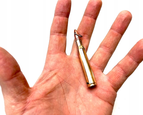 Niewielki nóż składany w formie naboju.