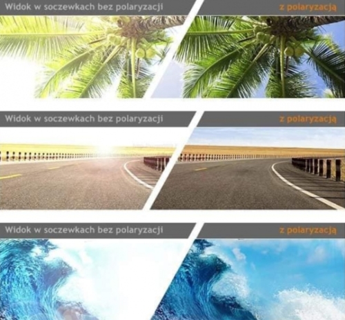 - Spróbuje Ci to zwizualizować. Wyobraź sobie, że jedziesz samochodem po ulewie, wtedy kiedy jezdnia jest jeszcze mokra i odbijają się od niej promienie słoneczne. Mimo okularów przeciwsłonecznych czujesz dyskomfort, ponieważ Twoje okulary przeciwsłonecznie nie tłumią całego odbijanego światła, tylko część. Tak samo jakbyś patrzył na śnieg, w którym odbijają się promienie słoneczne. Razi. Bardzo razi. Właśnie okulary przeciwsłoneczne z polaryzacją zapobiegają temu efektowi.