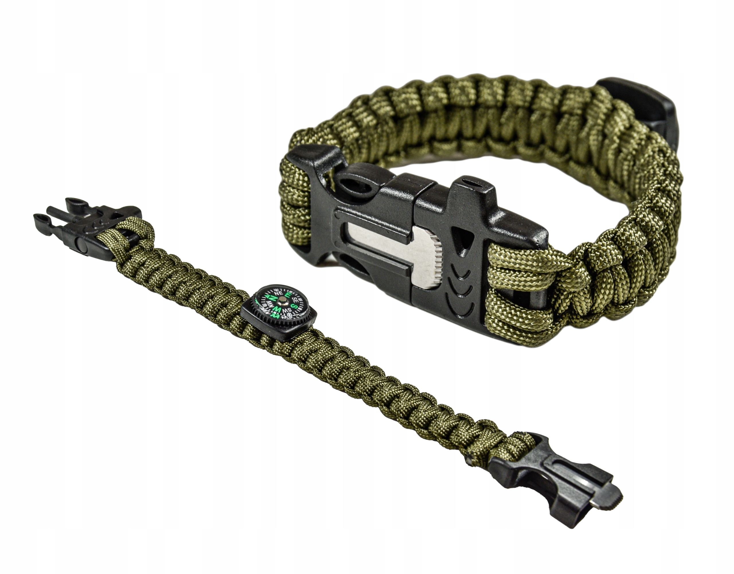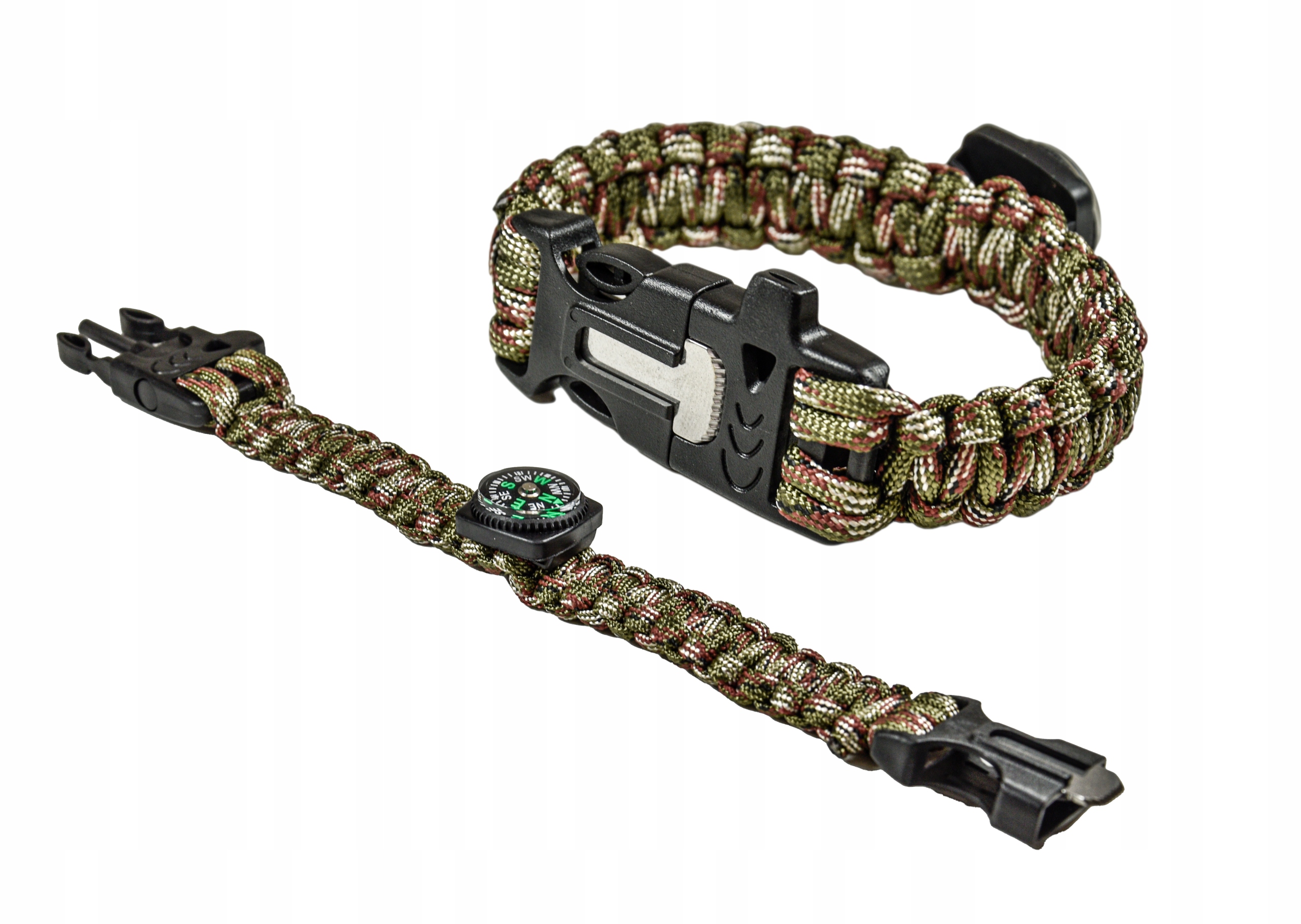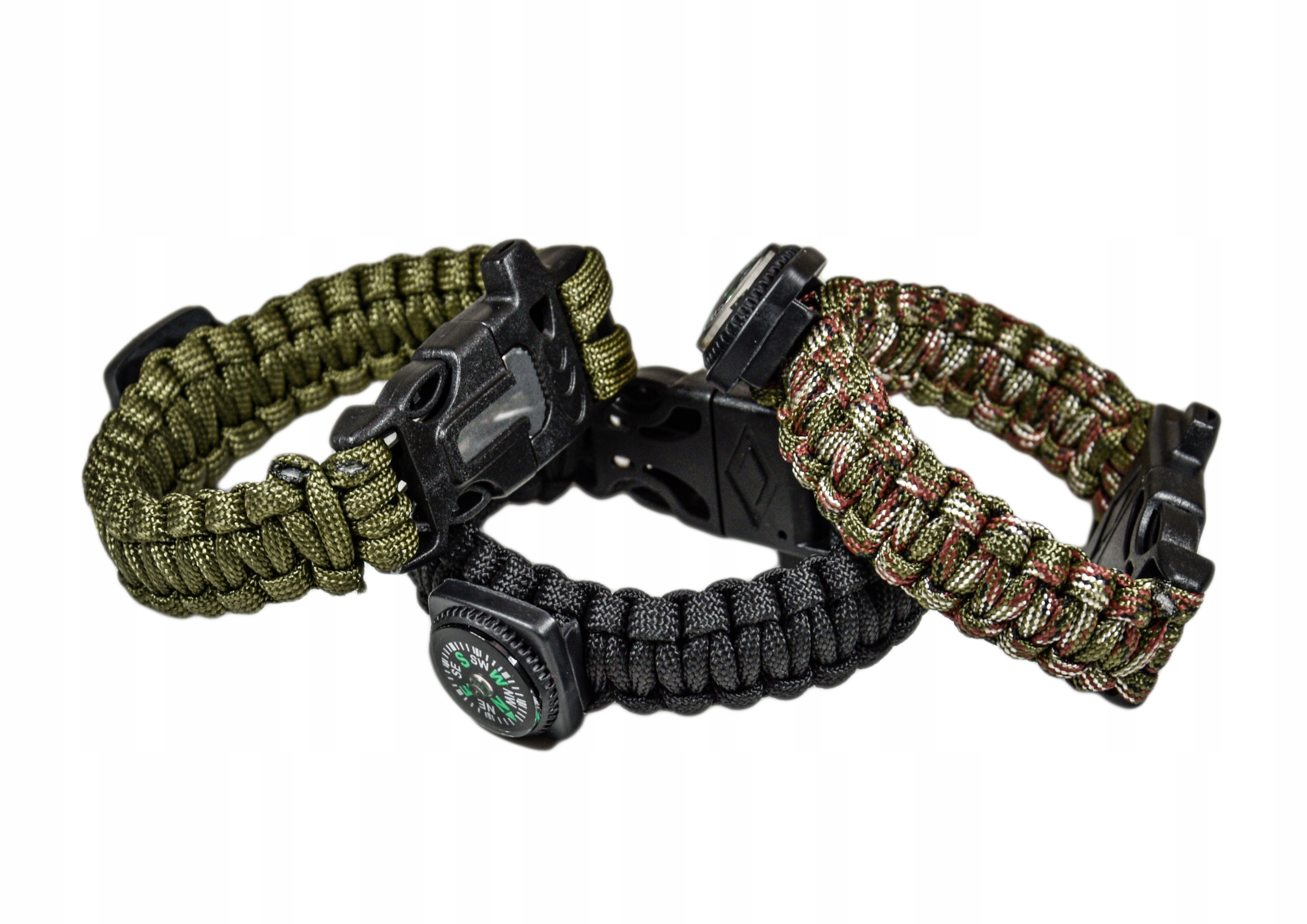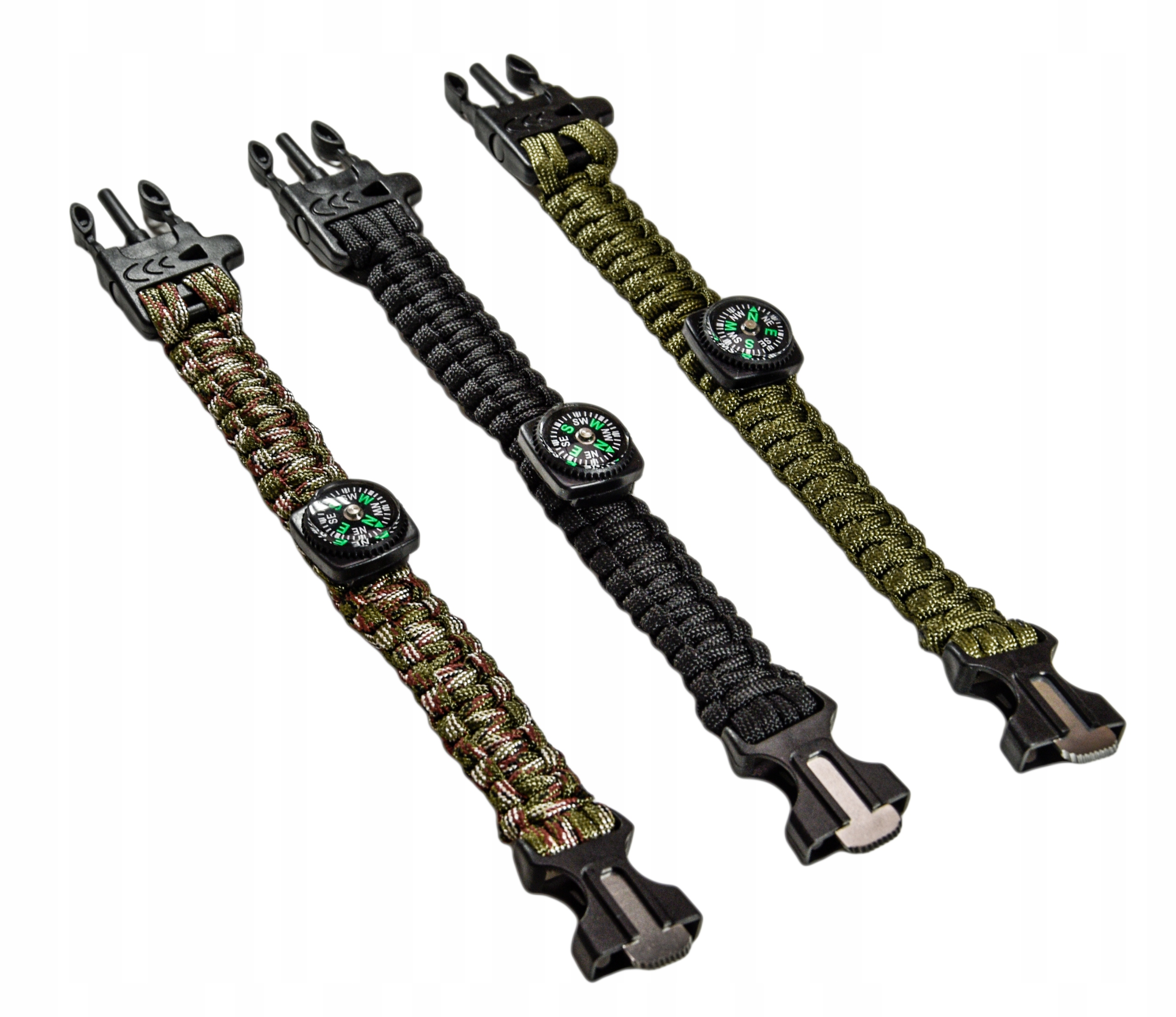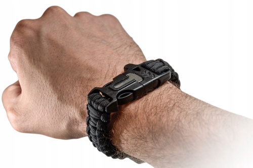 - Wielofunkcyjna bransoletka została specjalnie zaprojektowana dla żądnych przygód ludzi, którzy kochają góry i wyprawy na łono natury. Do bransoletki dołączony jest gwizdek, krzesiwo, ostrze do cięcia i kompas, które pozwolą Ci przetrwać w najcięższych warunkach z dala od cywilizacji. Po rozplątaniu linka ma wiele zastosowań. Można jej użyć do zbudowania schronienia, zastąpienia urwanych sznurówek, czy jako element pułapki.