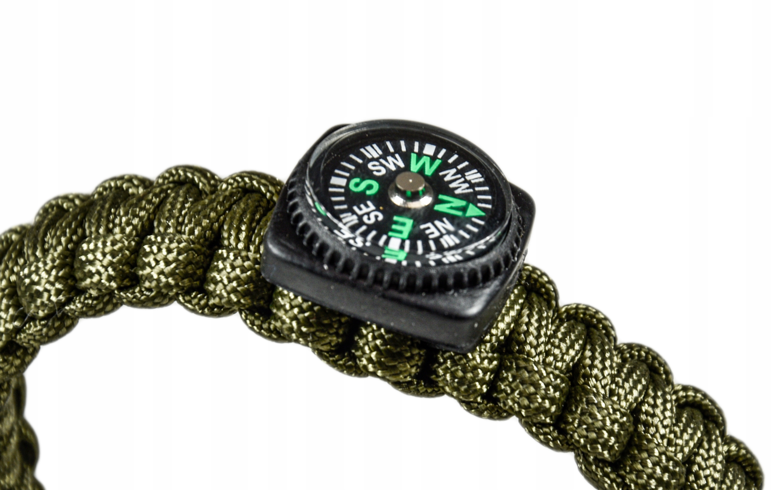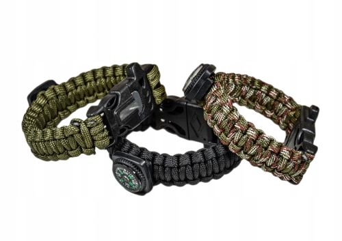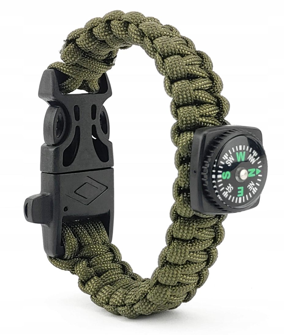 OPASKA BRANSOLETKA KOMPAS SURVIVAL KRZESIWO LINKA GWIZDEK SZNUREK PARACORD