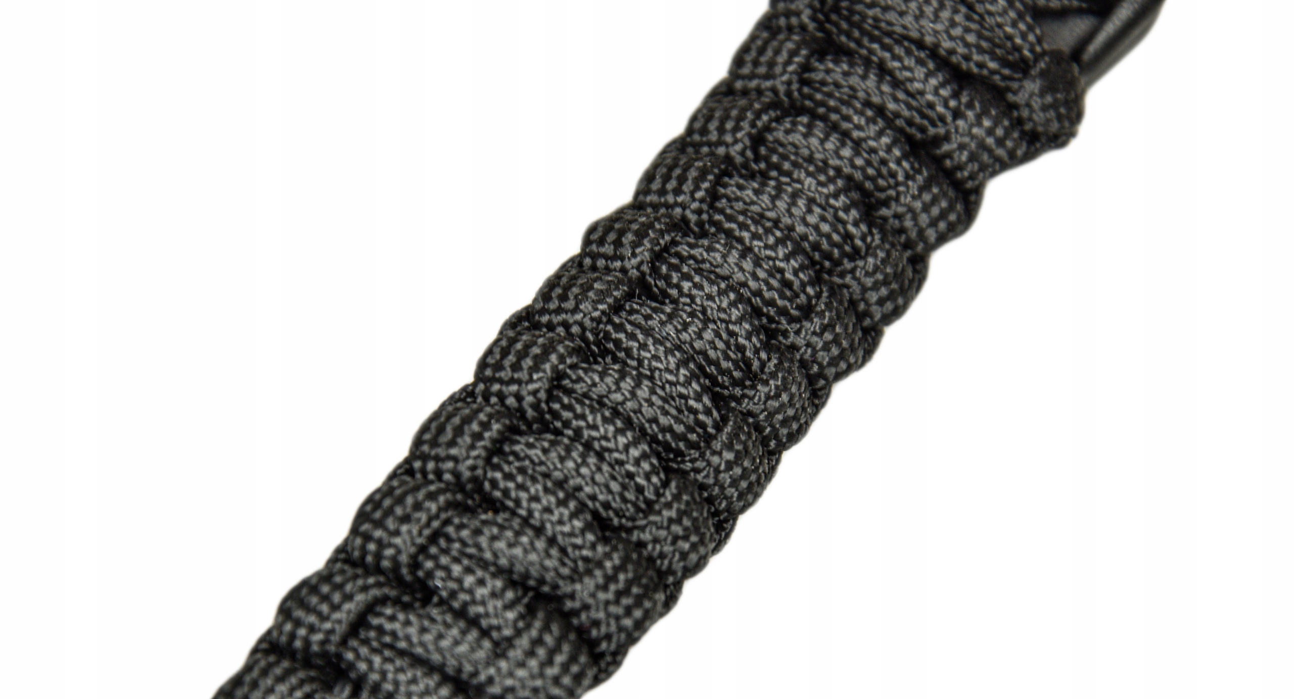 - Wykonana z wytrzymałej plecionej linki spadochronowej - paracordu zapinanej na klamrę.