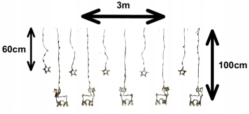 - Wspaniała kurtyna świetlna o kolorze białym ciepłym ma aż 160 pięknych punktów świetlnych przeplatanych drucikiem w elastycznej przeźroczystej obejmie Szeroka na 3 metry i długa na 100 cm pięknie rozświetli każde pomieszczenie