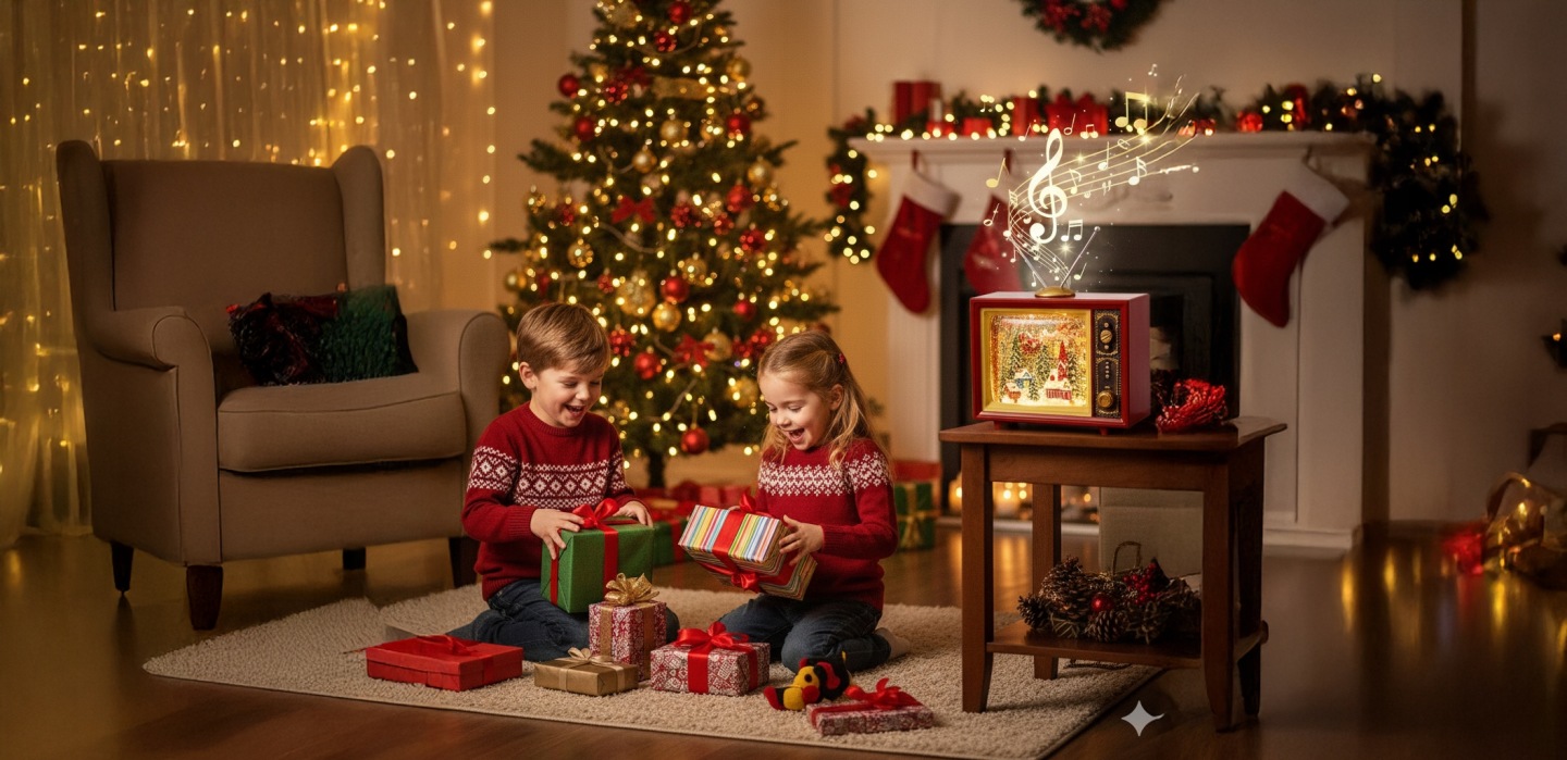 - Wprowadź świąteczną magię do swojego domu z wyjątkową pozytywką w formie retro telewizora!