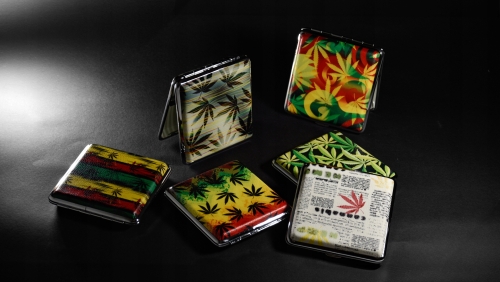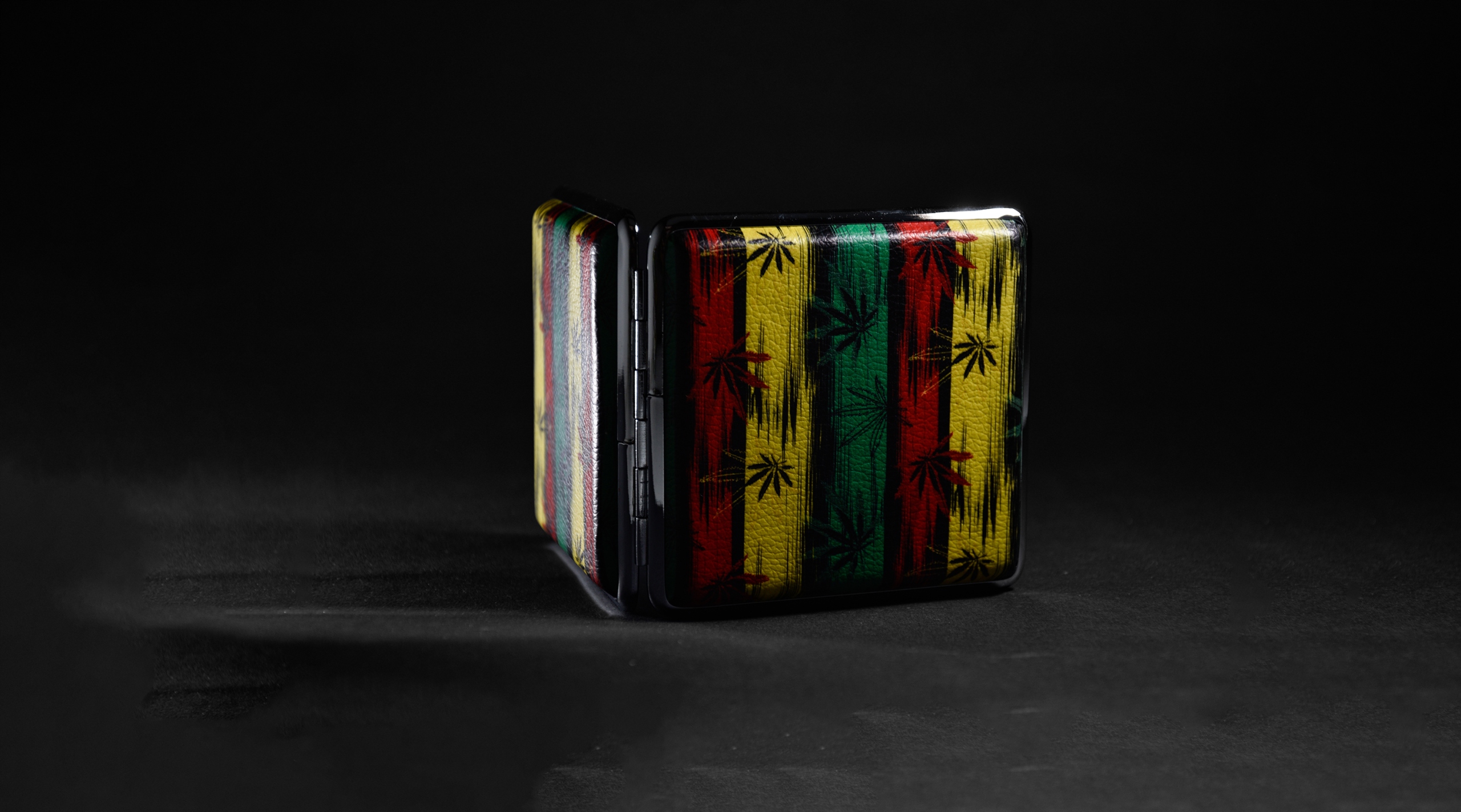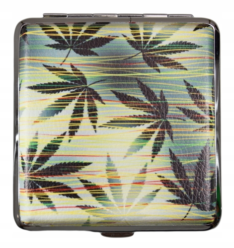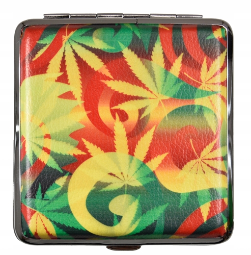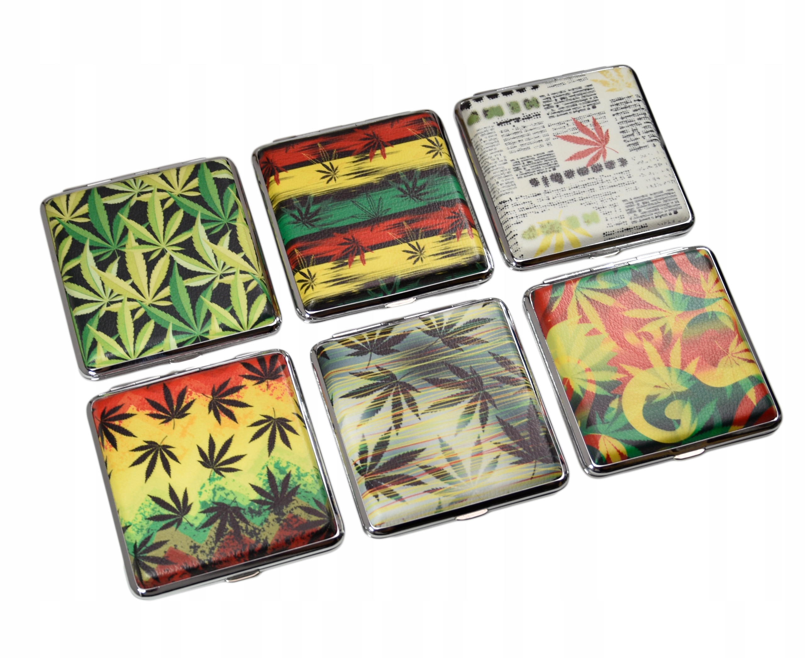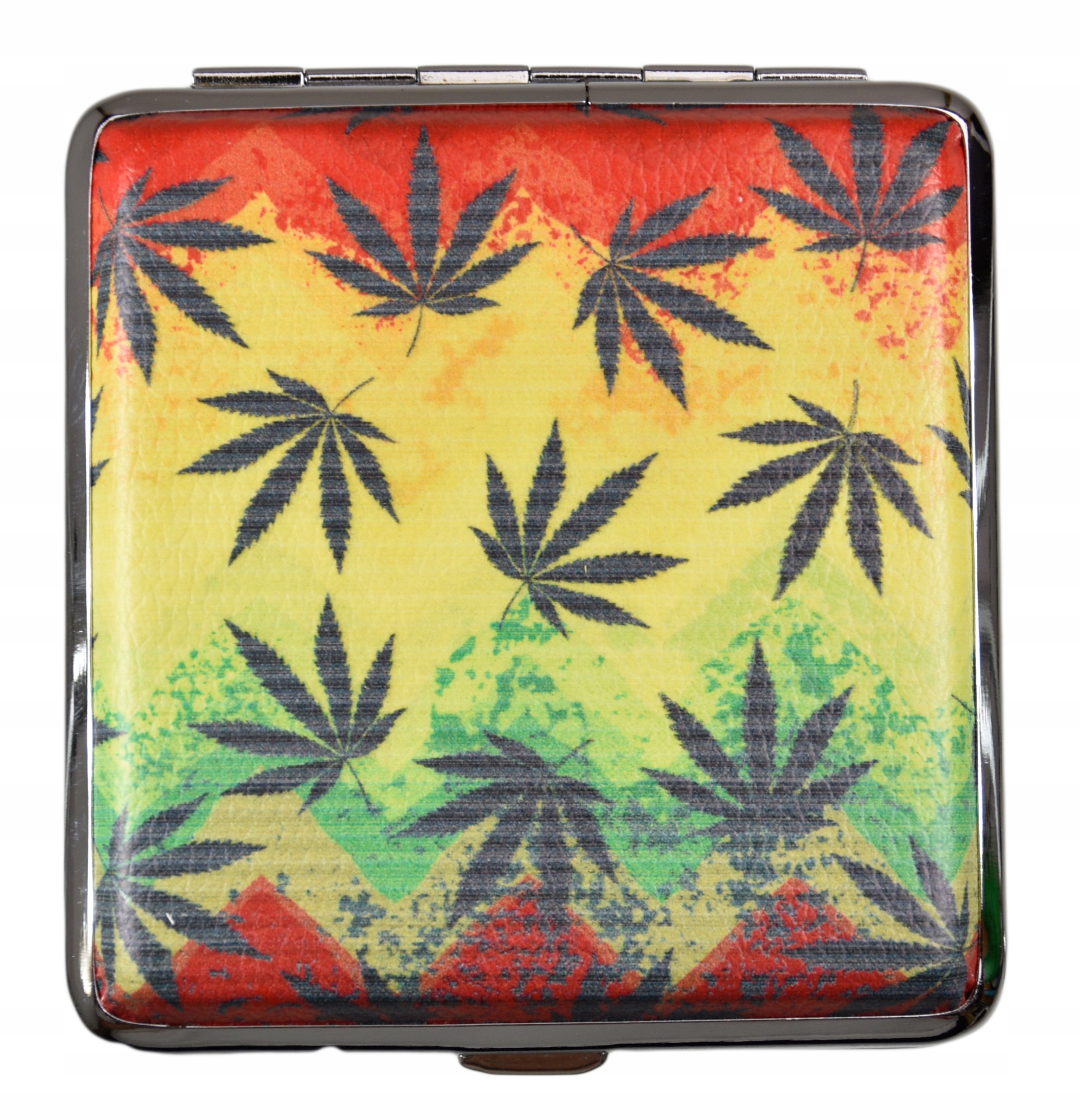 PAPIEROŚNICA METALOWA MARIHUANA THC CBD EKOSKÓRA 20 PAPIEROSÓW REGGAE