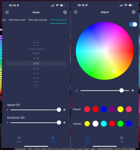 - Panel LED RGB posiada wiele funkcji świecenia, takich jak świecenie z góry na dół z dołu do góry, od środka do zewnątrz lub z zewnątrz do środka plus zmiana kolorów świecenia ale to tylko mała namiastka co potrafi to małe urządzenie