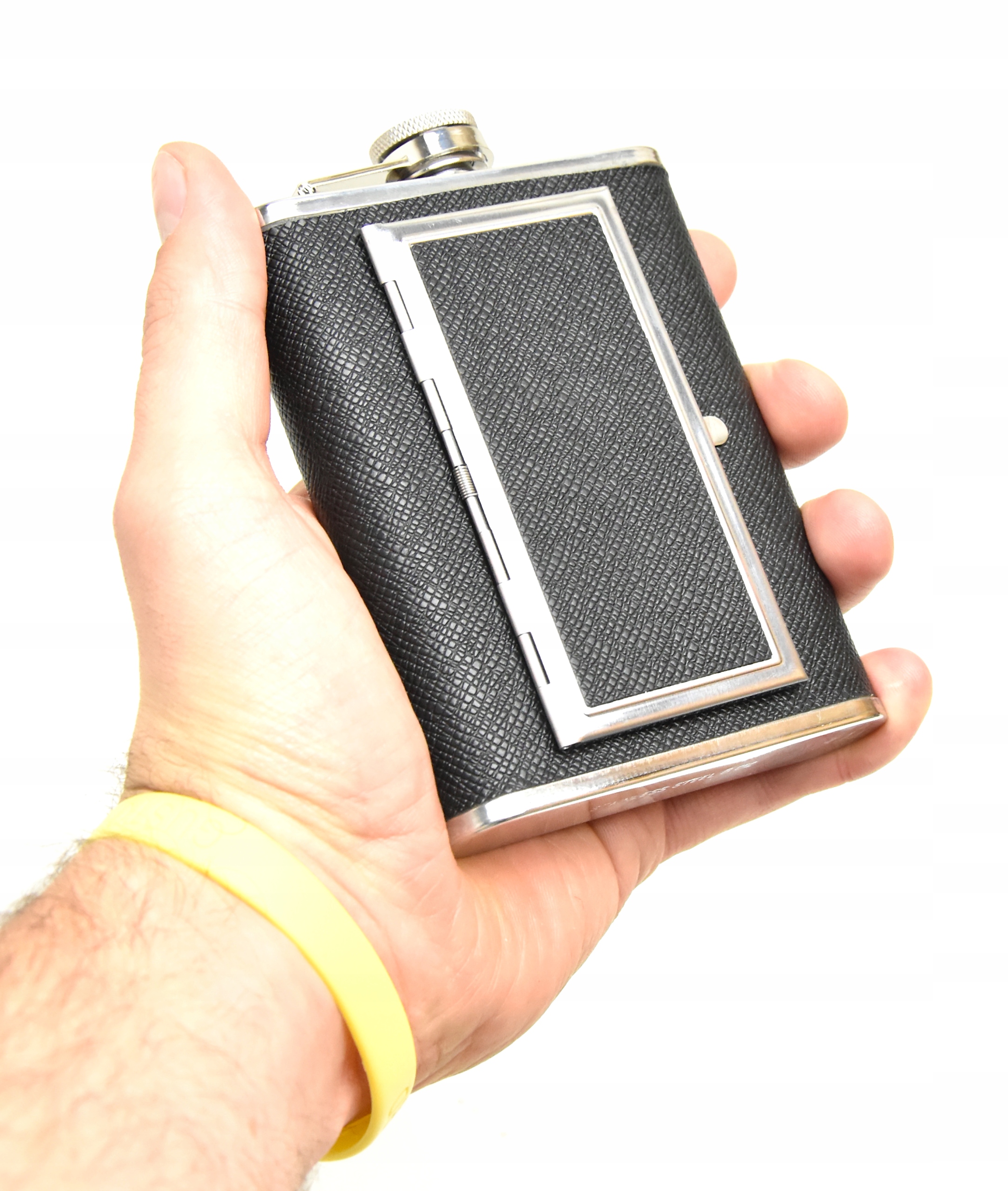• Oprócz swojej normalnej funkcji piersiówka posiada ukrytą z przodu papierośnice która zmieści 6 papierosów standardowych, grubych, jak i setki.