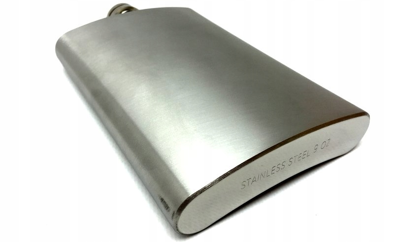 - Piersiówka posiada zakręcany korek przymocowany na specjalnym zawiasie.