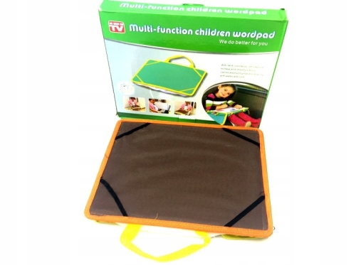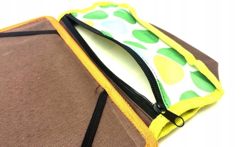 - Dwie kieszenie po bokach podstawki do których dziecko może schować np. kredki czy inne przybory.