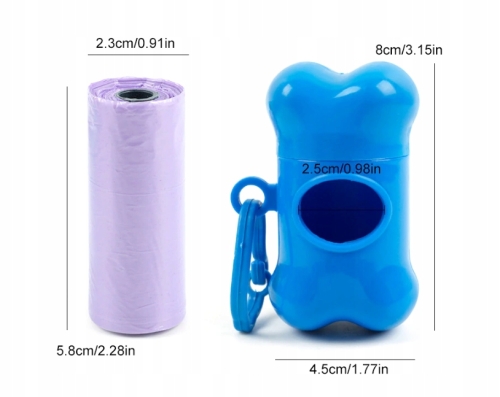 - Dozownik zawiera dwie rolki z 15 biodegradowalnymi woreczkami.