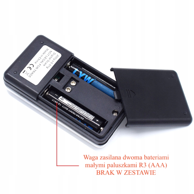 - Waga zasilana jest dwoma bateriami R3 (małe paluszki AAA )