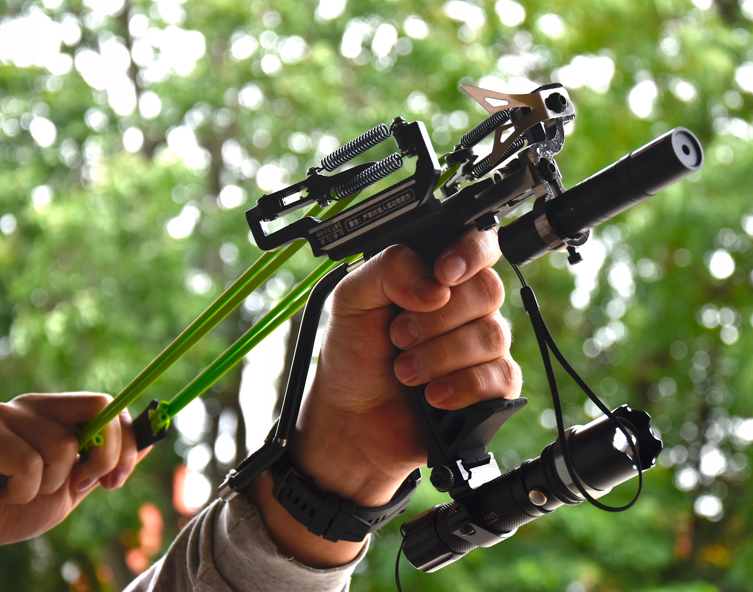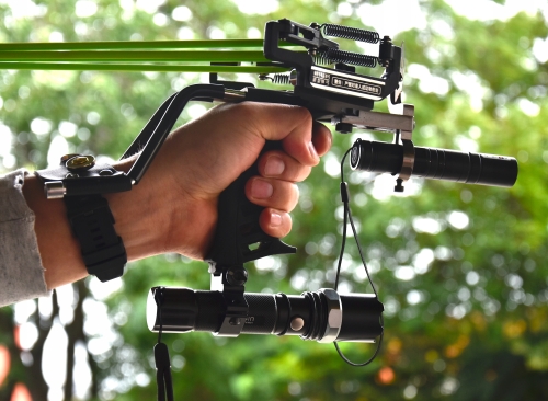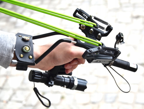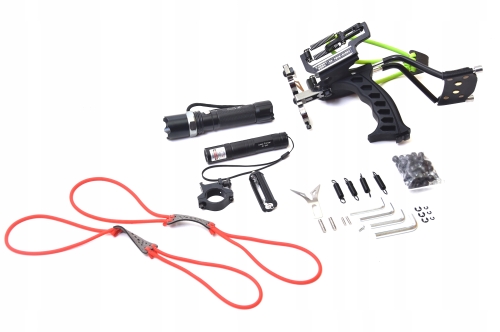 - Celownik laserowy w postaci przypinanego zielonego lasera z przodu procy o mocy 500mW ułatwi nam namierzenie wybranego celu.