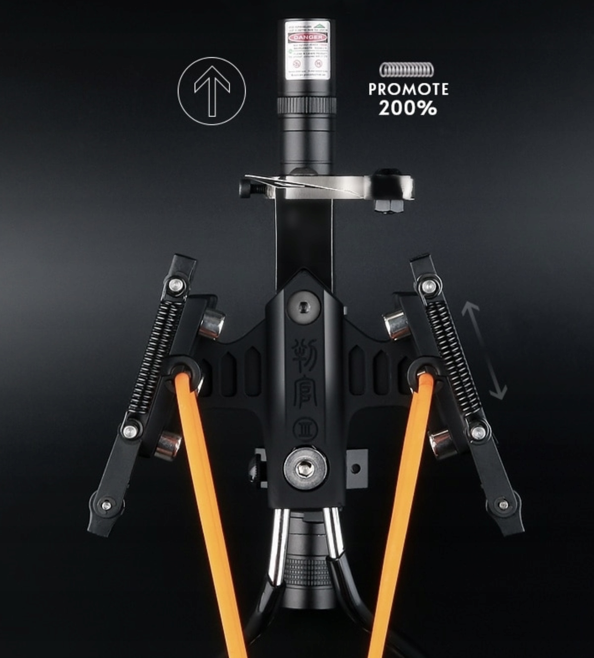 - Podpórka na przedramię, która ułatwia utrzymanie naciągu i sprawia że cel jest bardziej dokładniejszy, podpórka jest odkręcana więc można też korzystać z procy bez podpórki
