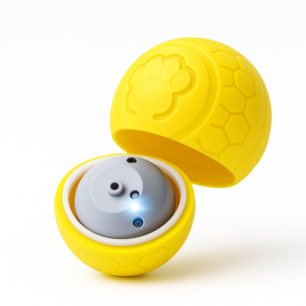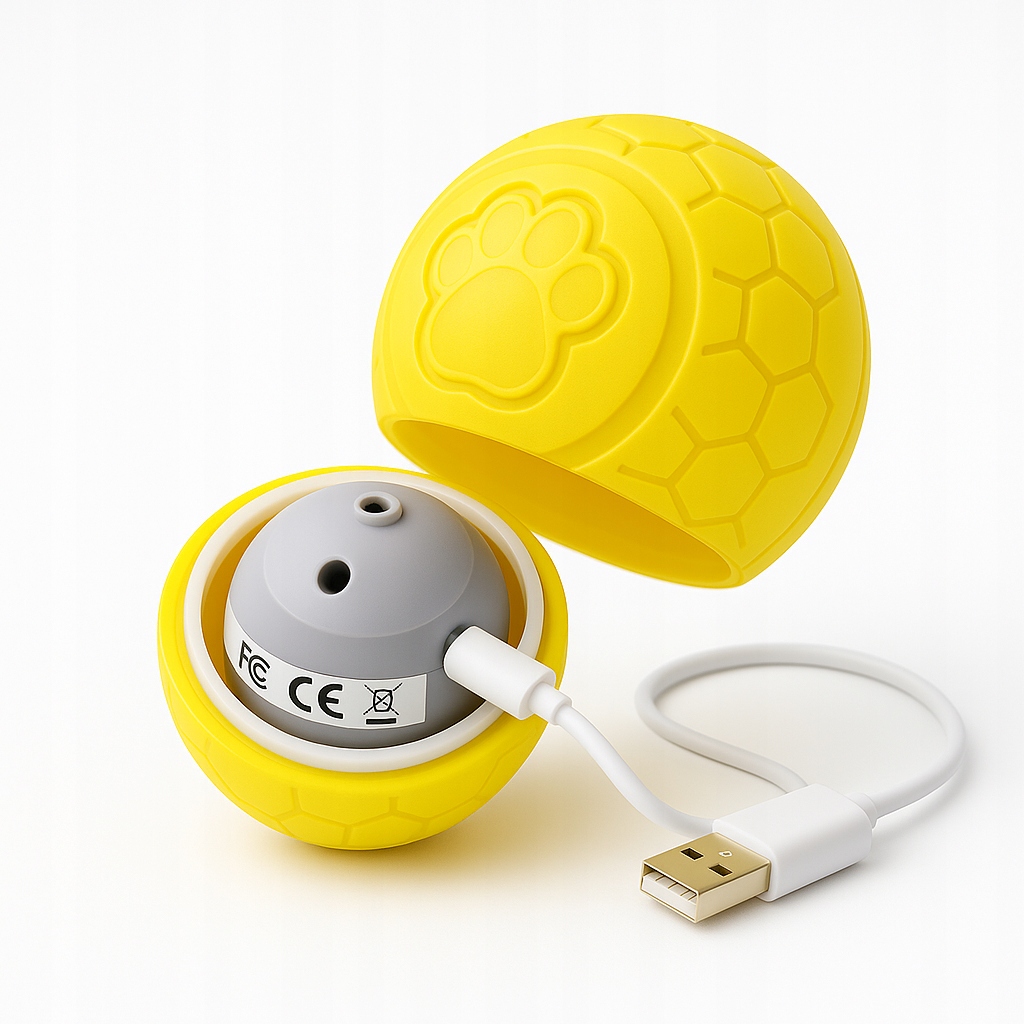 - Piłka działa w trybie automatycznym – po włączeniu zaczyna skakać, poruszać się i świecić, a po chwili się zatrzymuje. Gdy Twój pupil najmniej się tego spodziewa – piłka ponownie się aktywuje, wprawiając go w ruch i zainteresowanie!