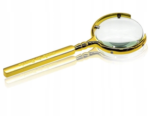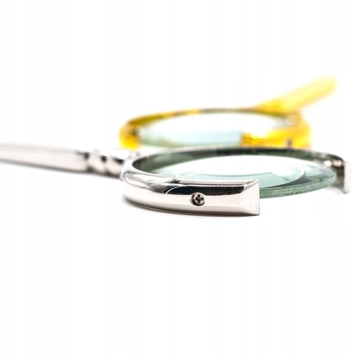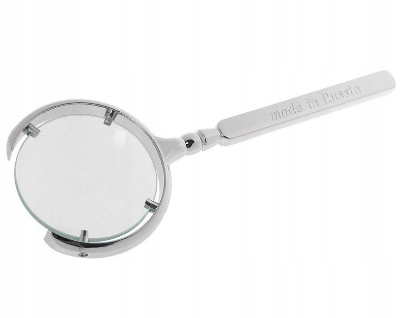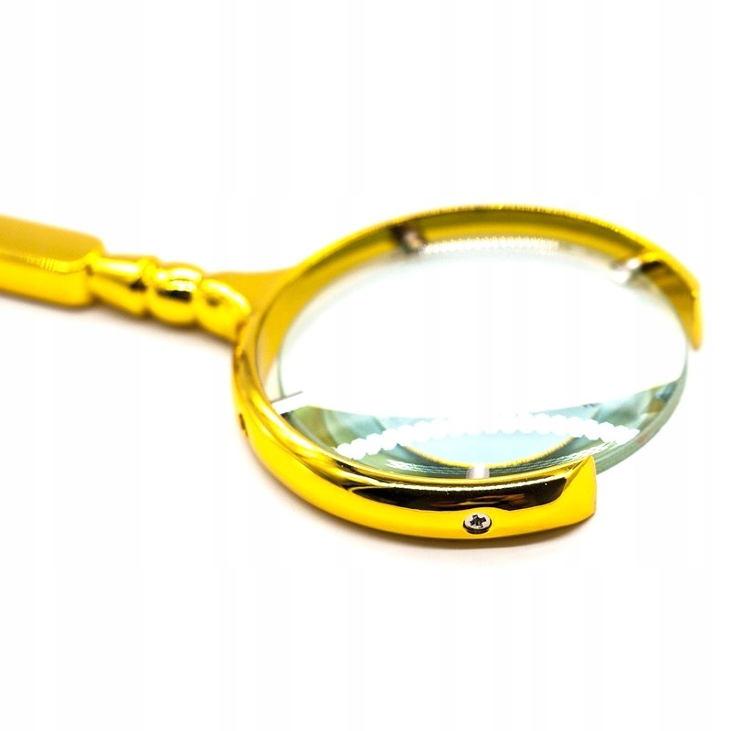 - Gruba szklana soczewka oprawiona jest w metalowy pierścień.