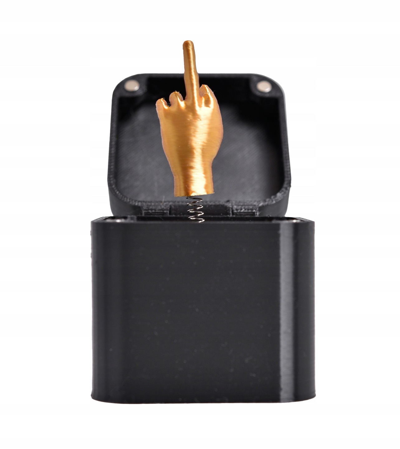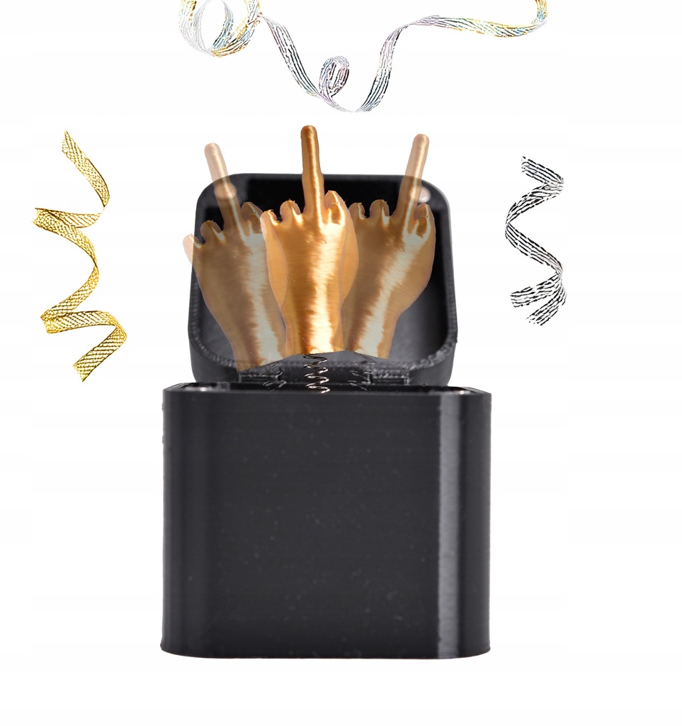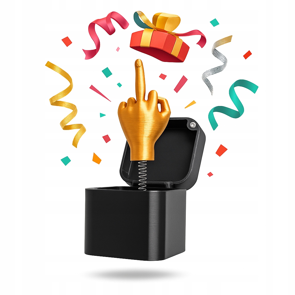 - Zaskakująca niespodzianka – środkowy palec wyskakujący z pudełka!