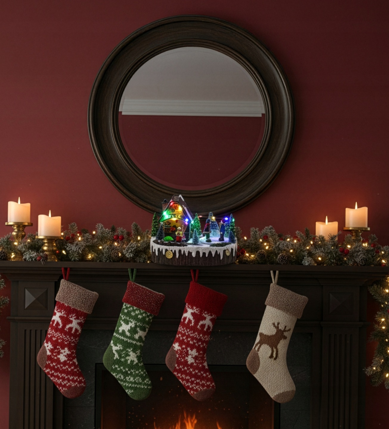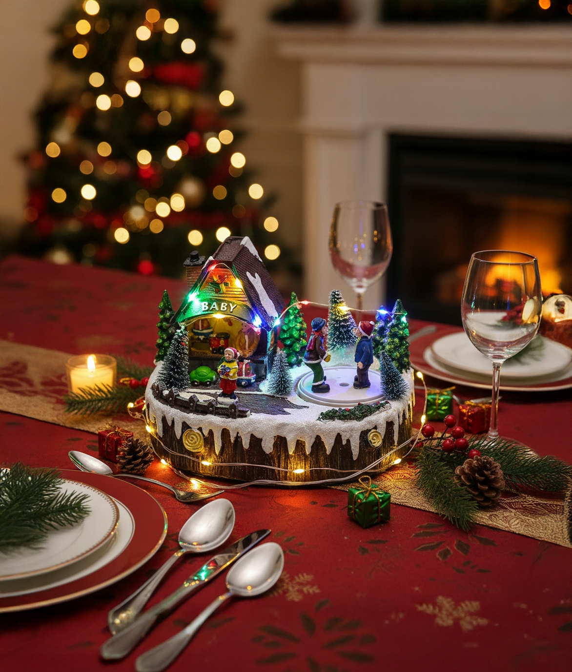 Miasteczko Bożonarodzeniowe LED z Ruchomą Scenką i Pozytywką – Sklepik dla Dzieci