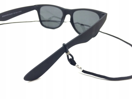 - Sznureczek wykonany jest z wytrzymałego tworzywa, posiada elastyczne silikonowe końcówki, które z łatwością dopasowują się do wszystkich typów zauszników, przez co sznureczek stabilnie utrzymuje się na okularach.