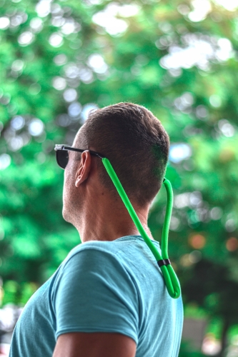 - Pływająca tasiemka do okularów dla żeglarza, który chce zawiesić okulary na szyi lub zabezpieczyć je na twarzy. Zakładana na zauszniki.