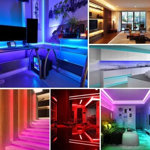 - Samoprzylepna taśma LED SMD jest bardo łatwa do cięcia z pięknymi efektami. Kontrola za pomocą pilota zdalnego sterowania na podczerwień sprawi że to do czego przylepisz taśmę rozświetli efektownie wszystko to co chcesz, np. podwozie auta, ramę obrazu, stolik, czy spód kanapy i wiele innych