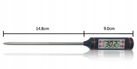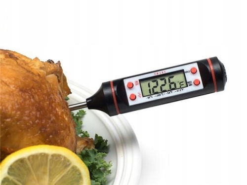 - Cyfrowy termometr umożliwia przygotowanie idealnie ugotowanego mięsa bez konieczności krojenia żywności lub pozostawiania ogromnych śladów przekłucia w żywności. Charakteryzuje się szerokim zakresem temperatur zarówno w Celcius, jak i Farenheit, od -58ºF do 572ºF lub od -50ºC do 300ºC.