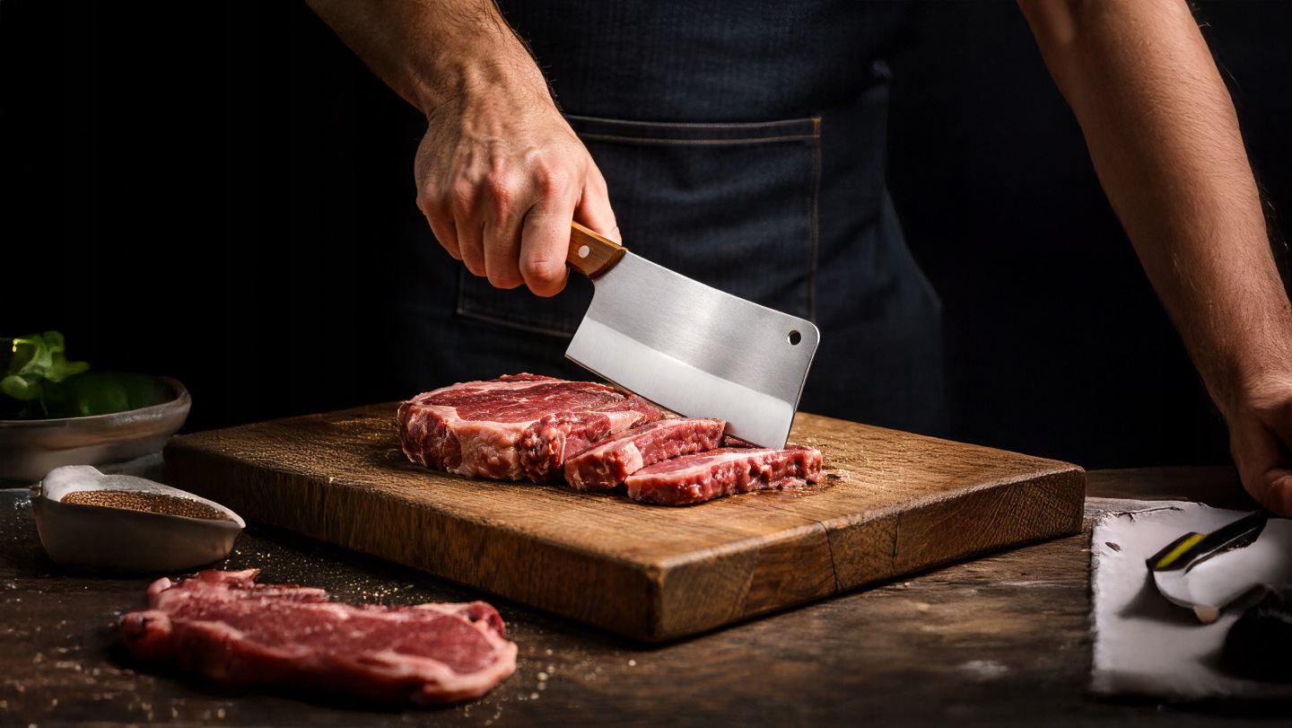 Idealny do rozłupywania kości, wycinania żeberek, skrzydełek oraz udek z kurczaka.