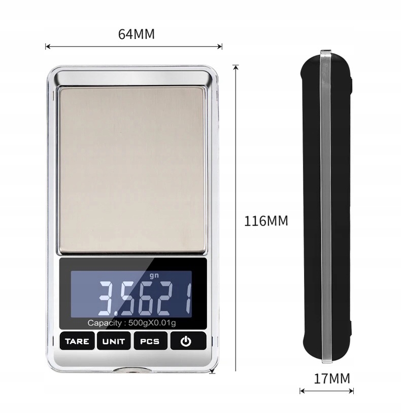 - Cała waga 116x64x15 mm