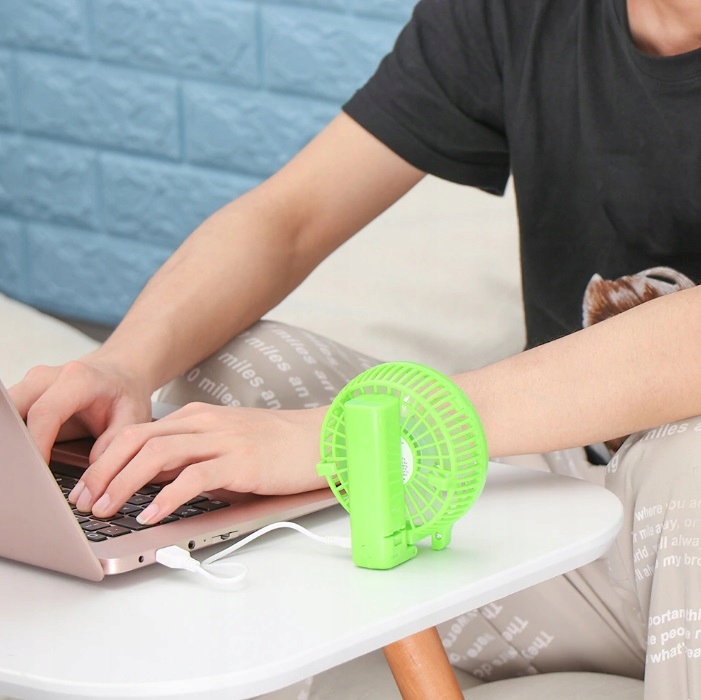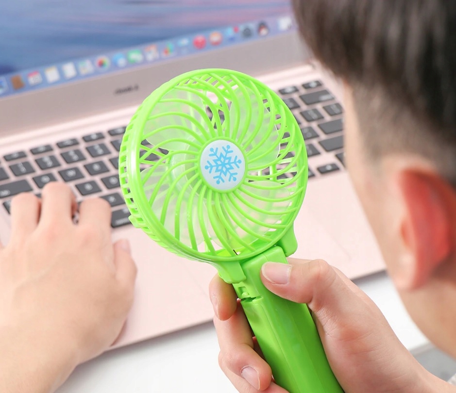 - Wiatrak Mini cooling fan, to wielofunkcyjne urządzenie, które posłuży jako wiatrak biurkowy który można złożyć odpowiednio do potrzeb lub jako przenośny wiatrak ręczny. Wiatraczek składa się i skierowuje tunel powietrza w odpowiednią stronę.