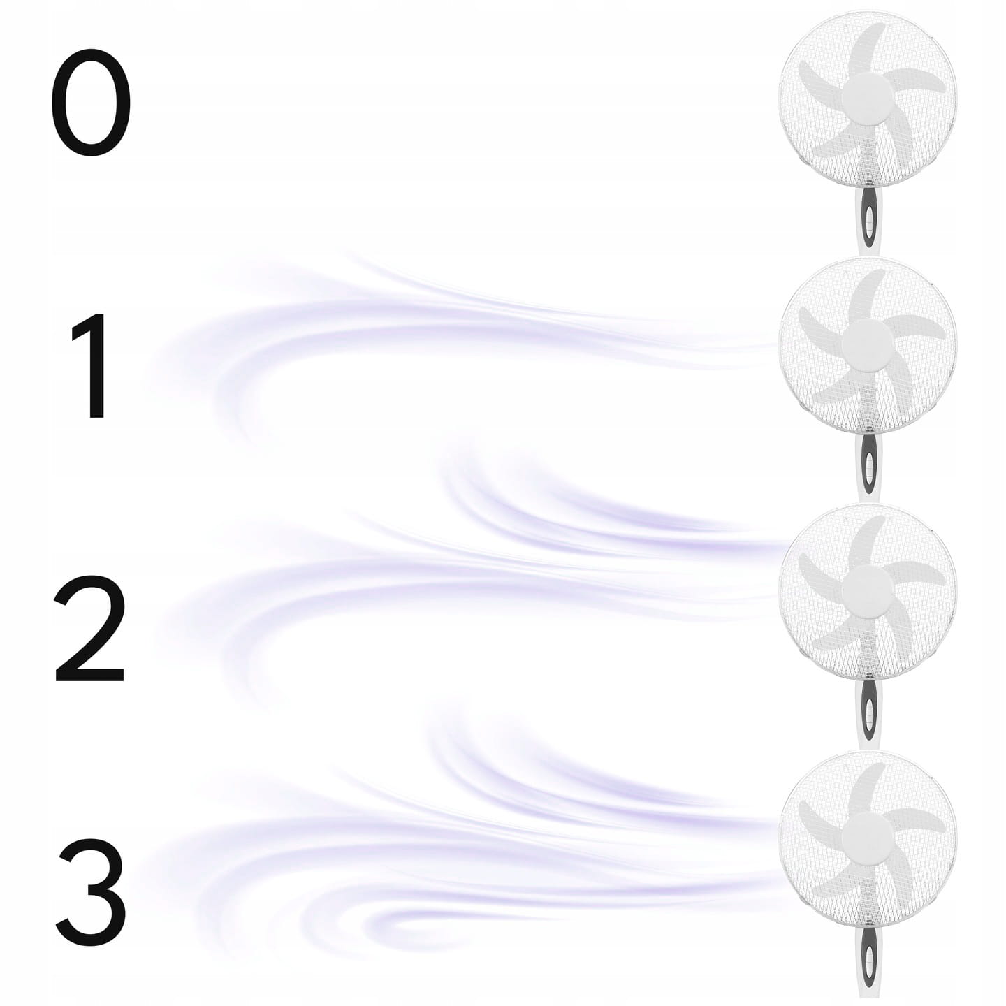 - Dzięki funkcji oscylacji w zakresie 90 stopni wentylator skutecznie rozprowadza chłodne powietrze po całym wnętrzu. Szeroki ruch głowicy sprawia, że przyjemny powiew dociera do każdego kąta, tworząc komfortowe warunki nawet w najbardziej upalne dni. W zależności od potrzeb możesz łatwo włączyć lub wyłączyć oscylację, zyskując pełną kontrolę nad kierunkiem nawiewu i poziomem ochłody.