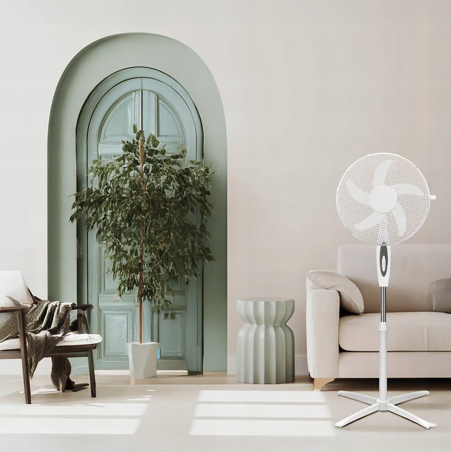 Szukasz skutecznego sposobu na ochłodę w upalne dni? Ten stylowy wentylator podłogowy łączy nowoczesny wygląd z niezawodną funkcjonalnością, zapewniając komfort w każdym wnętrzu. Doskonale sprawdzi się zarówno w salonie, sypialni, jak i w przestrzeni biurowej.