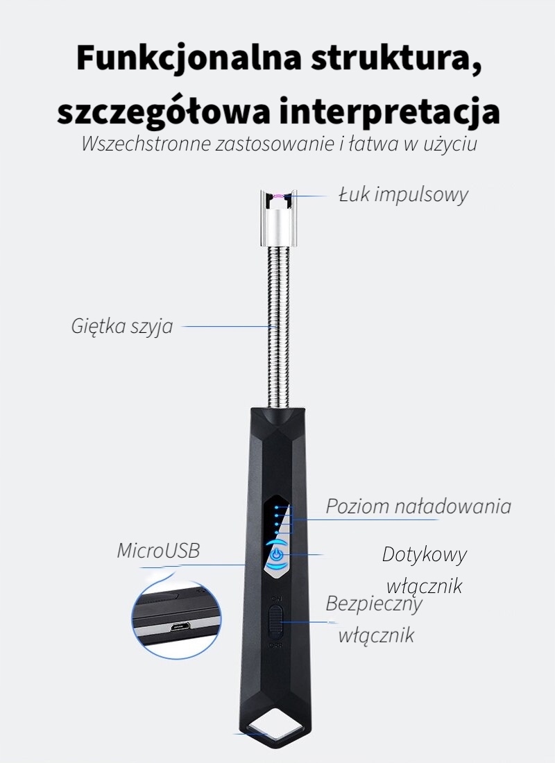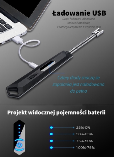 - Pojemna Bateria - W zależności od intensywności użytkowania, zapalniczka może starczyć nawet na tygodnie użytkowania
