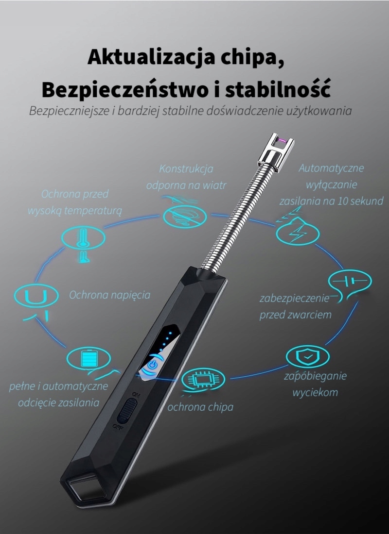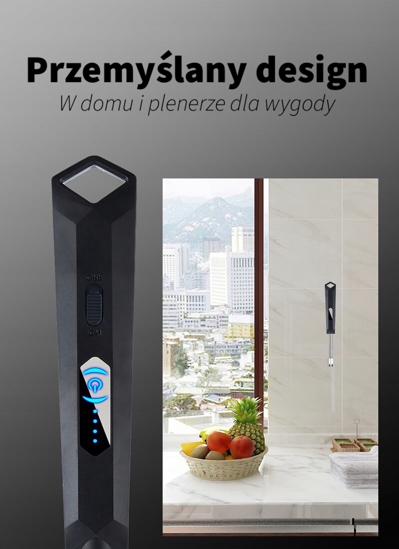 - Ta innowacyjna zapalniczka działa poprzez tworzenie łuku elektrycznego za pomocą jednego naciśnięcia przycisku. Wystarczy ją naładować przez kabel USB dołączony do zestawu i jest gotowa do pracy w dowolnym miejscu i czasie, a także w każdych warunkach pogodowych, gdyż zapalniczka nie wykorzystuje płomienia. Zapalniczka ma również funkcję bezpieczeństwa, więc nie zaświeci się, gdy włącznik zasilania jest zamknięty.