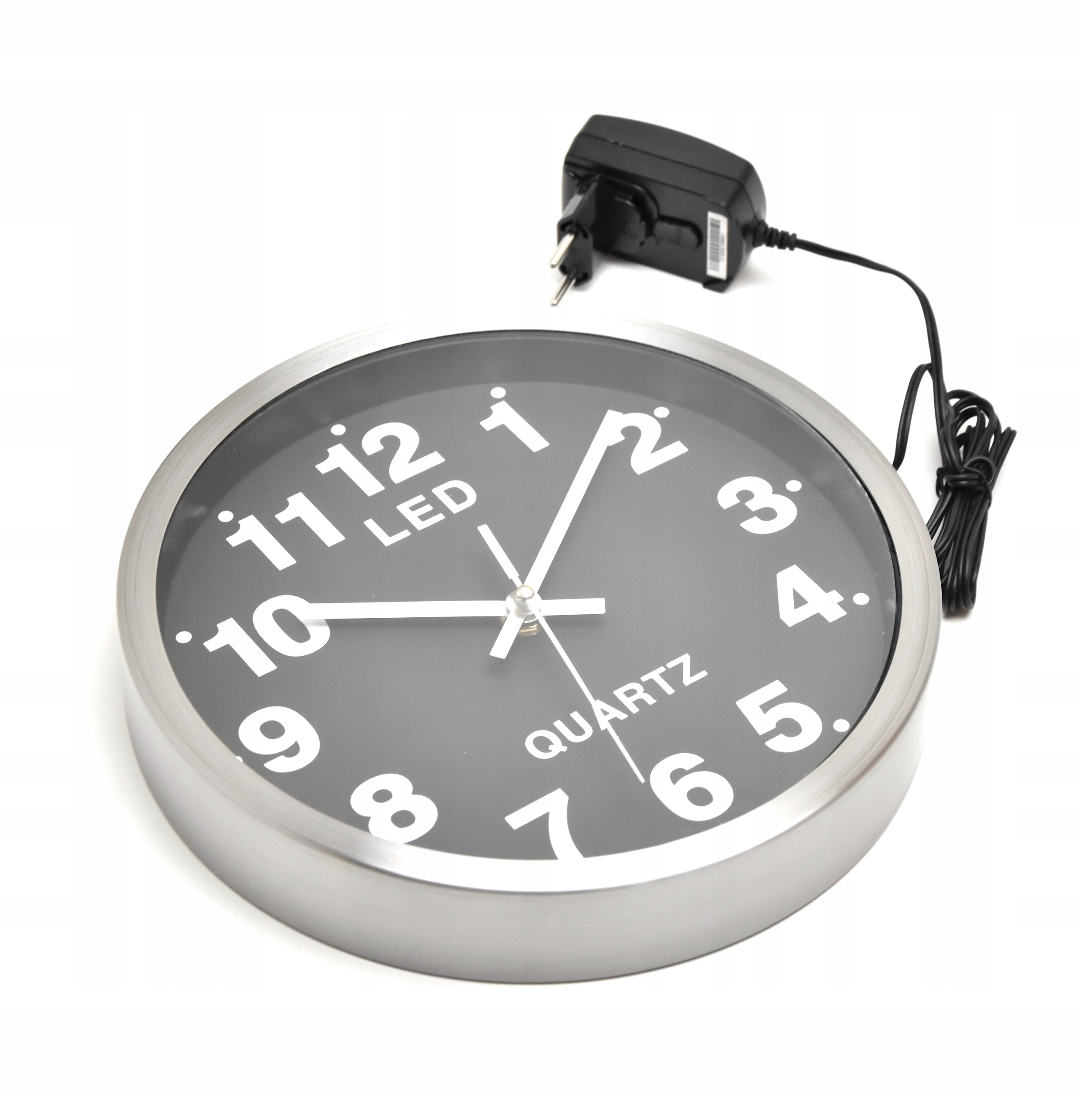 - Mechanizm zegara zasilany jest jedna baterią typu AA - paluszek (brak w zestawie), podświetlenie cyfr zasilane jest z sieci 220v-230v poprzez zasilacz.
