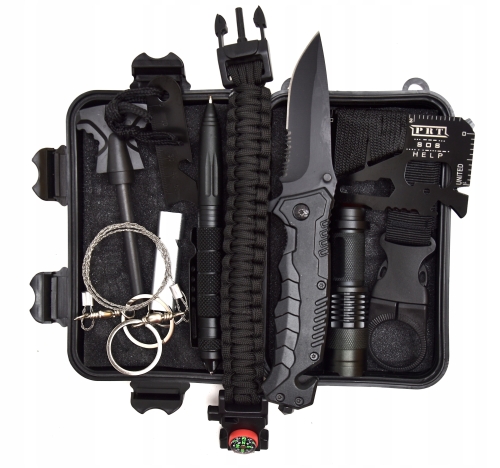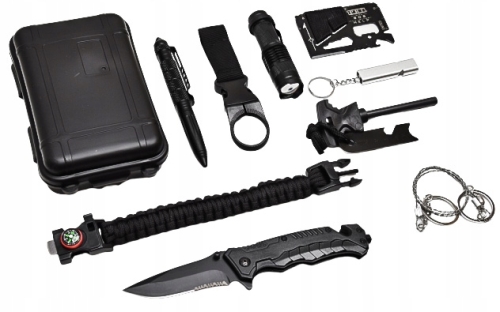 ZESTAW SURVIVAL MULTITOOL NÓŻ PIŁA KRZESIWO KARTA
