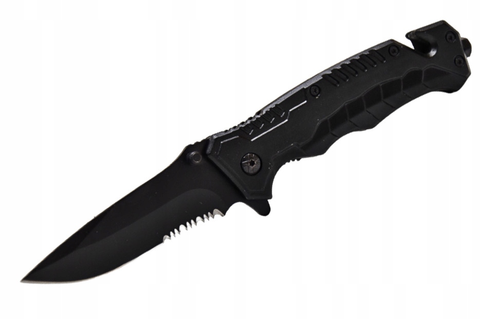 - Dodatkowe informacje: Nóż wyposażony w zbijak do szyb, ostrze do cięcia pasów oraz klips który umożliwia noszenie noża przy pasku.