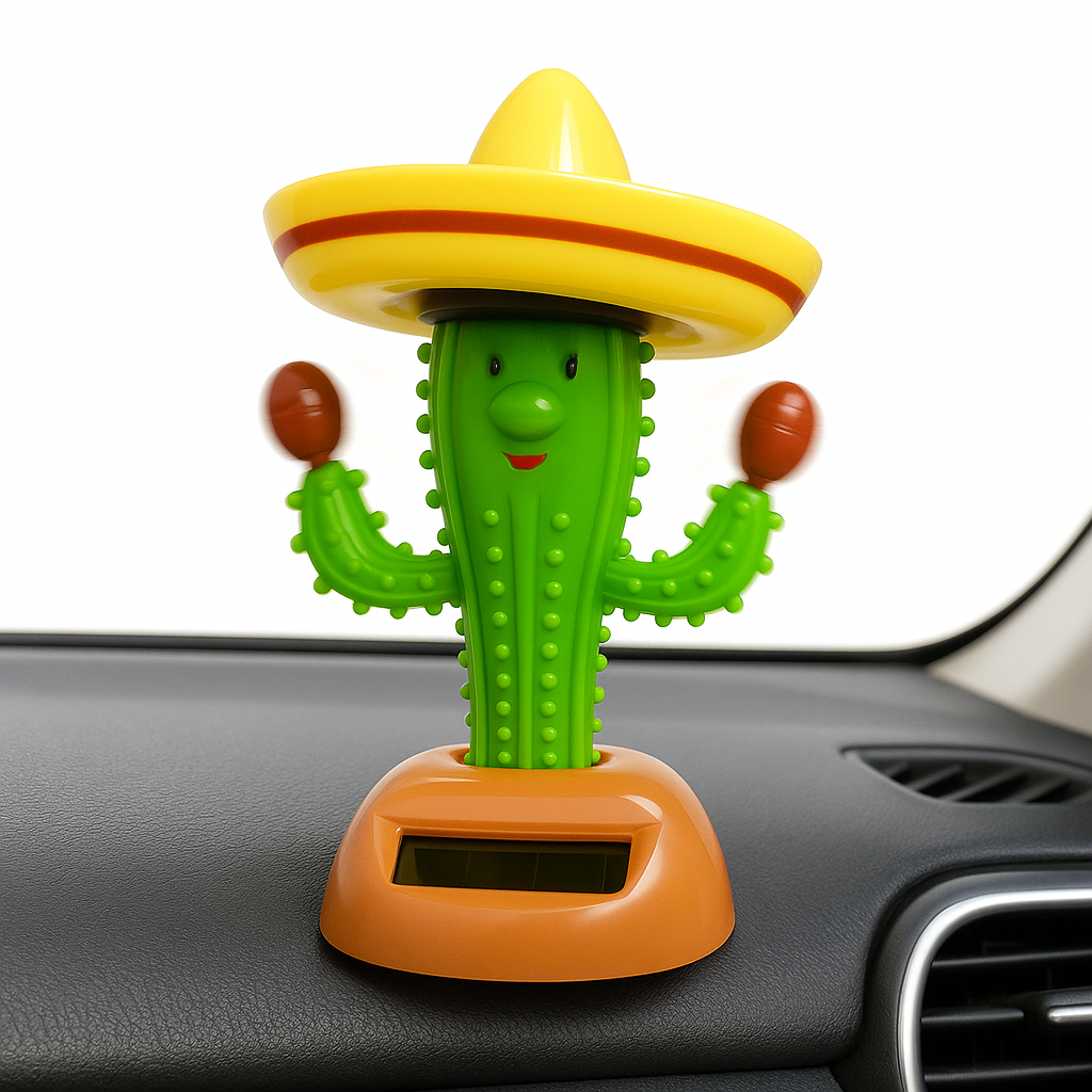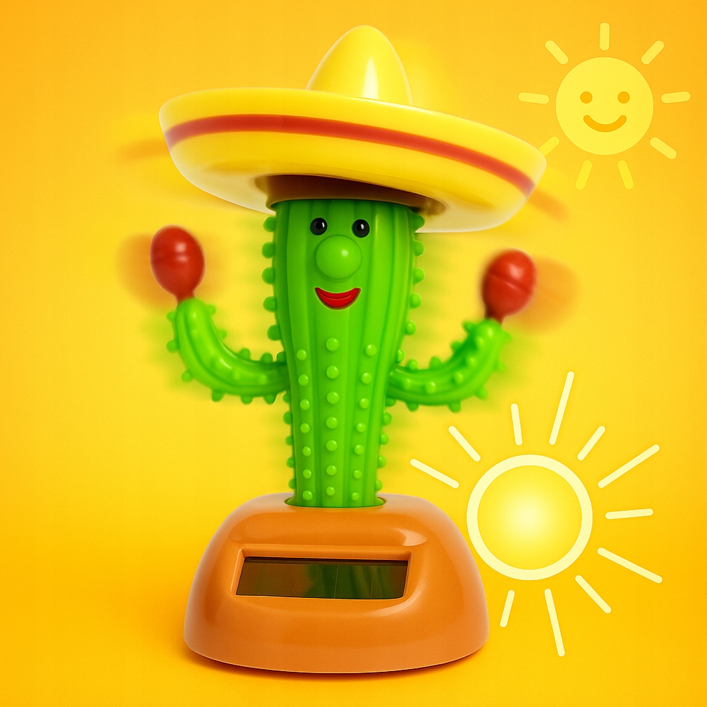 Wyjątkowa zabawka, która wprowadzi uśmiech w każdym miejscu! Dzięki wbudowanemu panelowi solarnemu kaktus porusza rękami i kapeluszem w rytm każdego światła – czy to promienie słońca, czy światło lampki. Idealny gadżet do auta, biura, pokoju dziecięcego czy restauracji w meksykańskim klimacie.