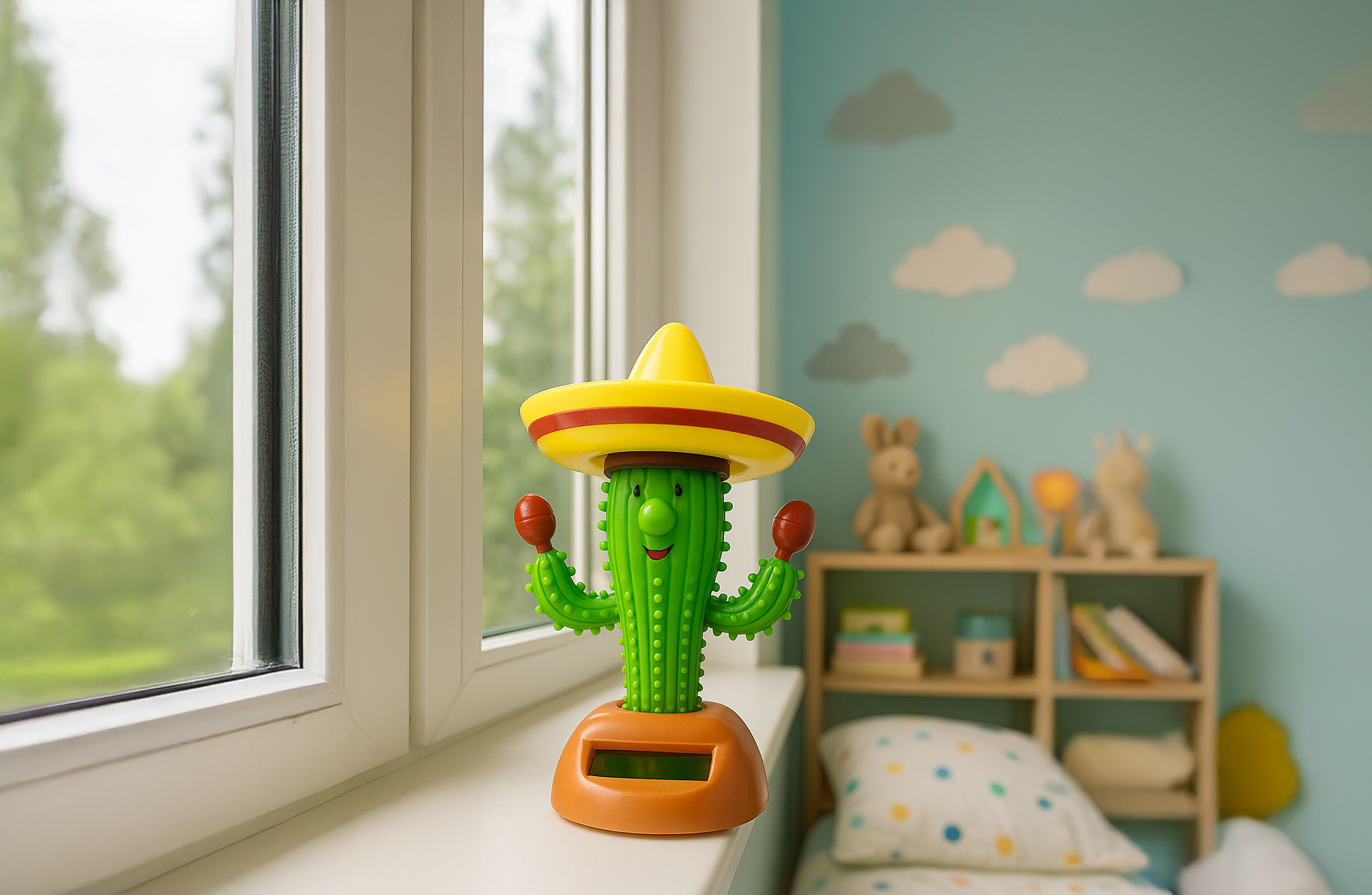 Tańczący Kaktus Solarny z Kapeluszem i Marakasami” – Rozwesel każdy dzień!